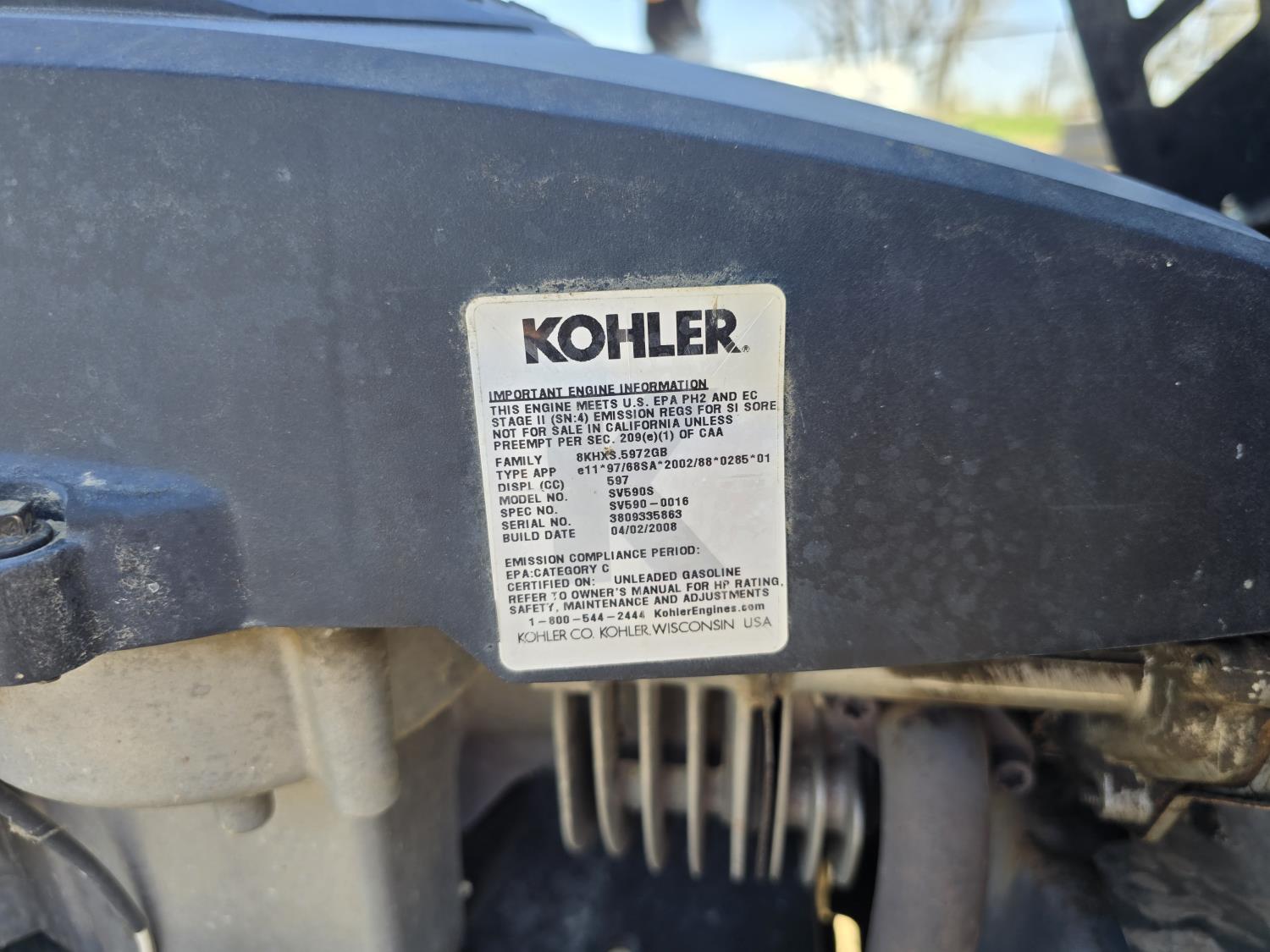 Kohler 19 HP gas engine, 15x6.00-6 front tires, 20x10.00-8 rear tires