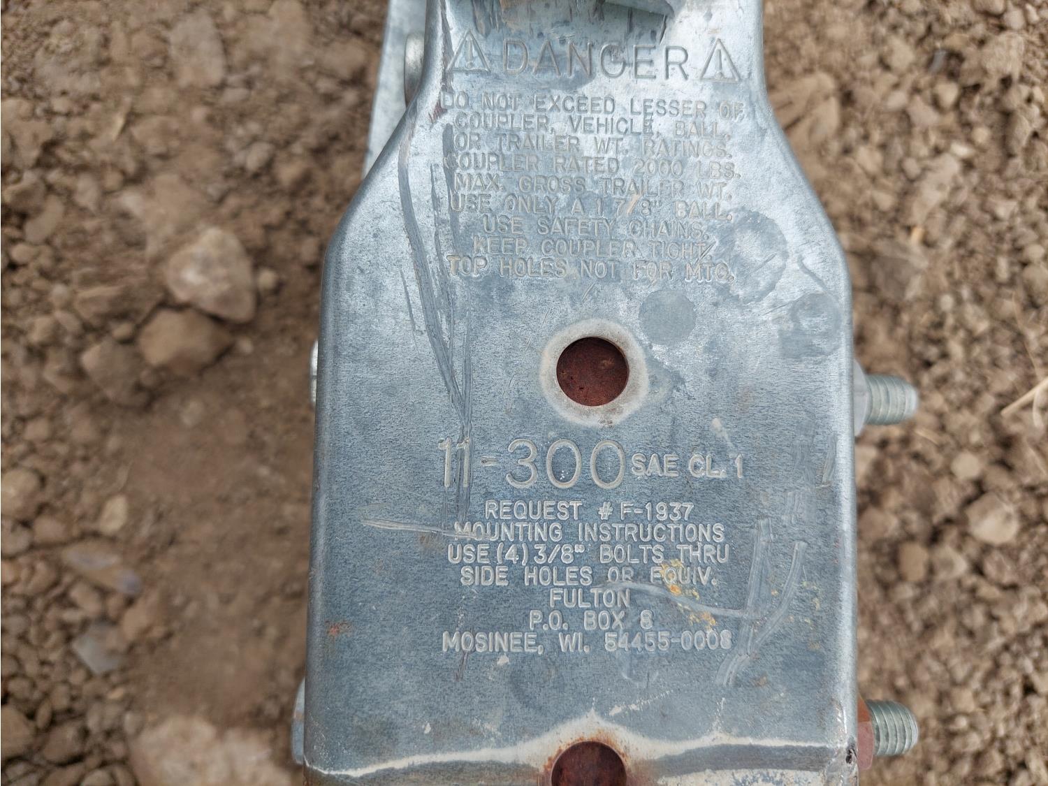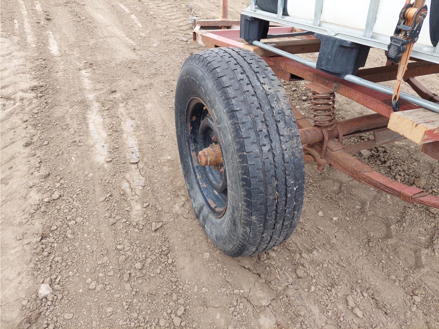 45 inch W x 38 inch L x 38 inch T tank, 33.5 inch W x 93 inch L trailer, spring suspension, 205/75R14 tires, 1-7/8 inch ball hitch