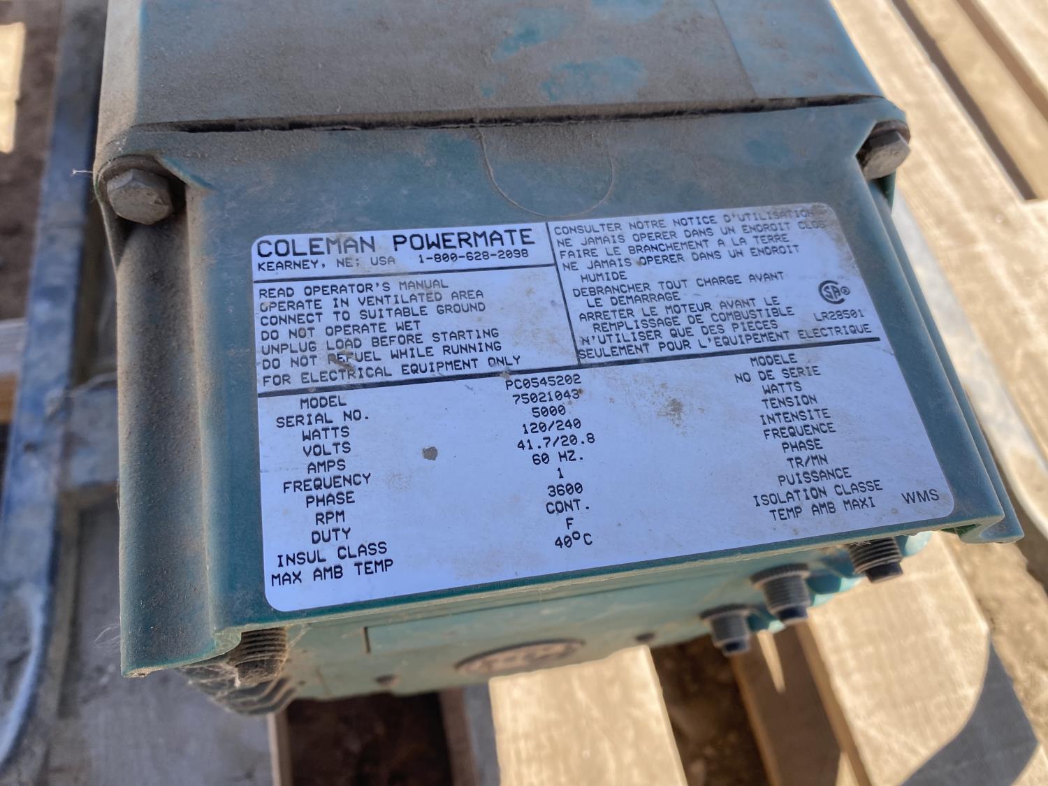 1563 Coleman Powermate 5000 W Generator