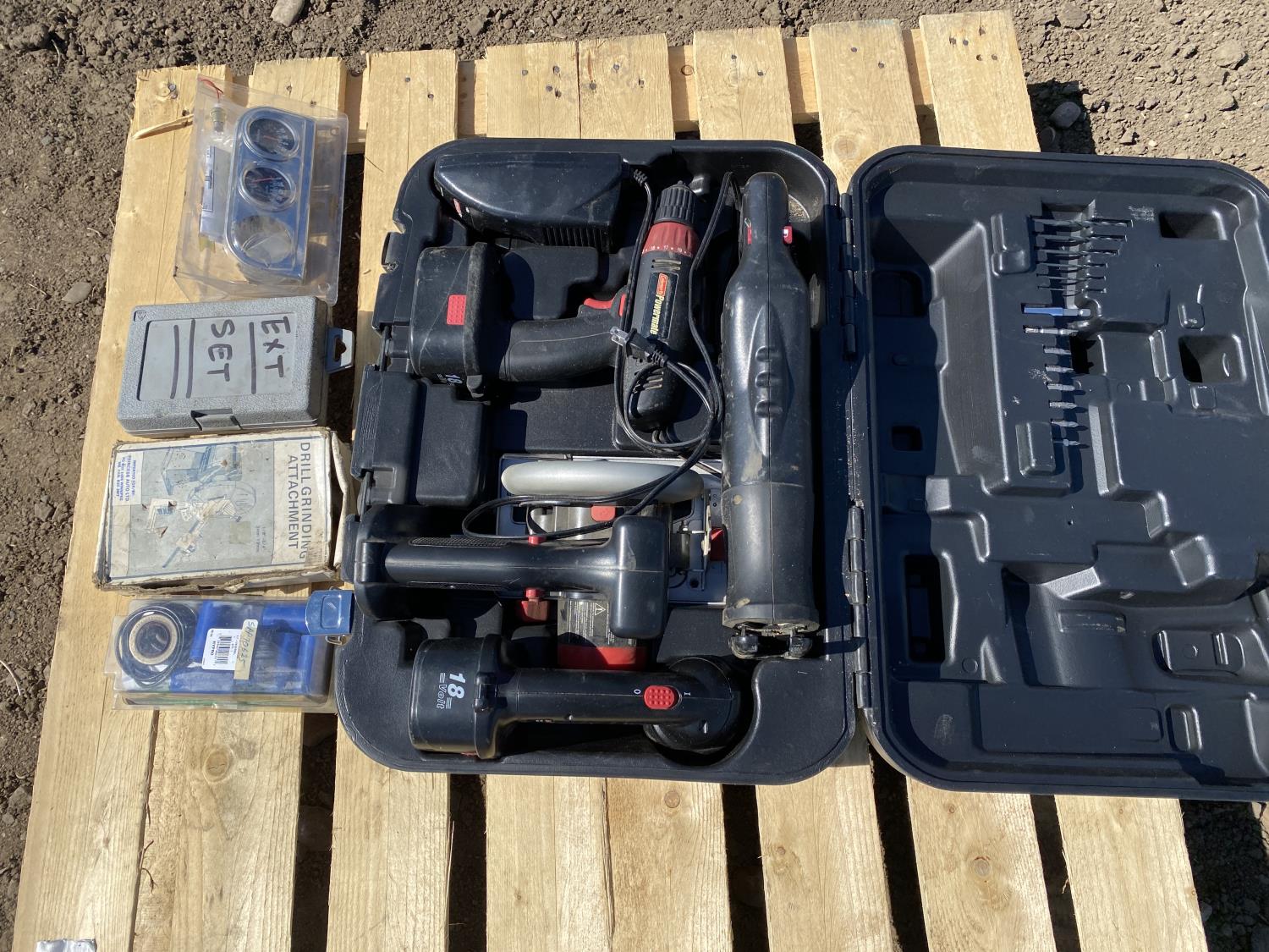 Includes reciprocating saw, circular saw, drill, light, (2) batteries, battery charger, gauge display, miscellaneous parts