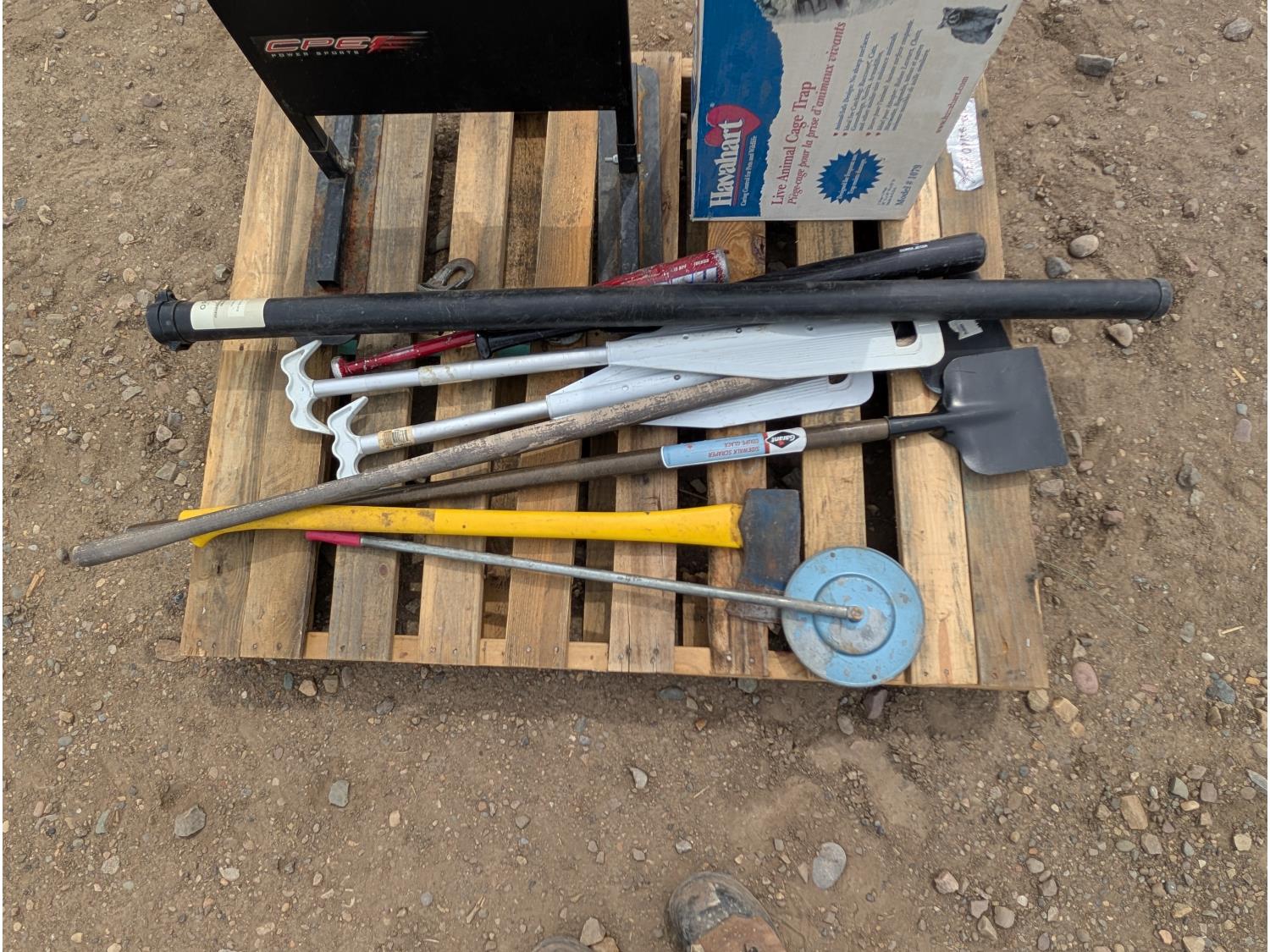 Qty of (2) ice scrapers, Qty of (1) wood axe, Qty of (2) baseball bat, Qty of (2) oars