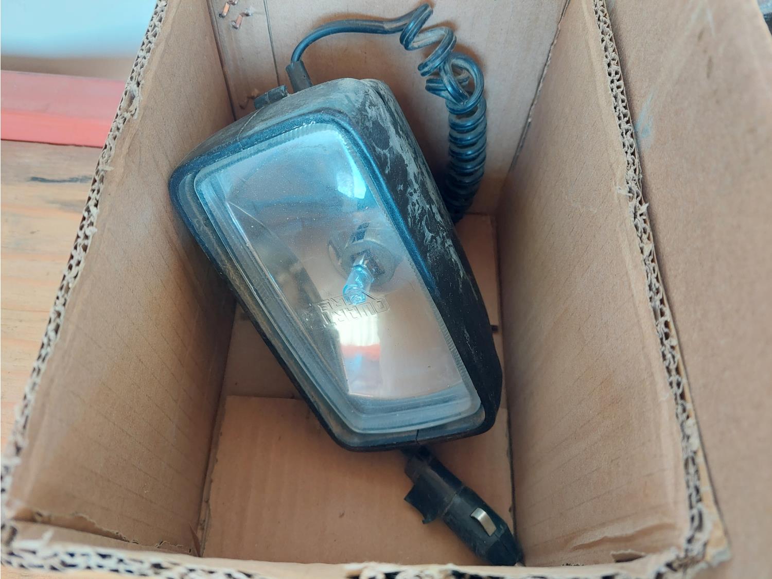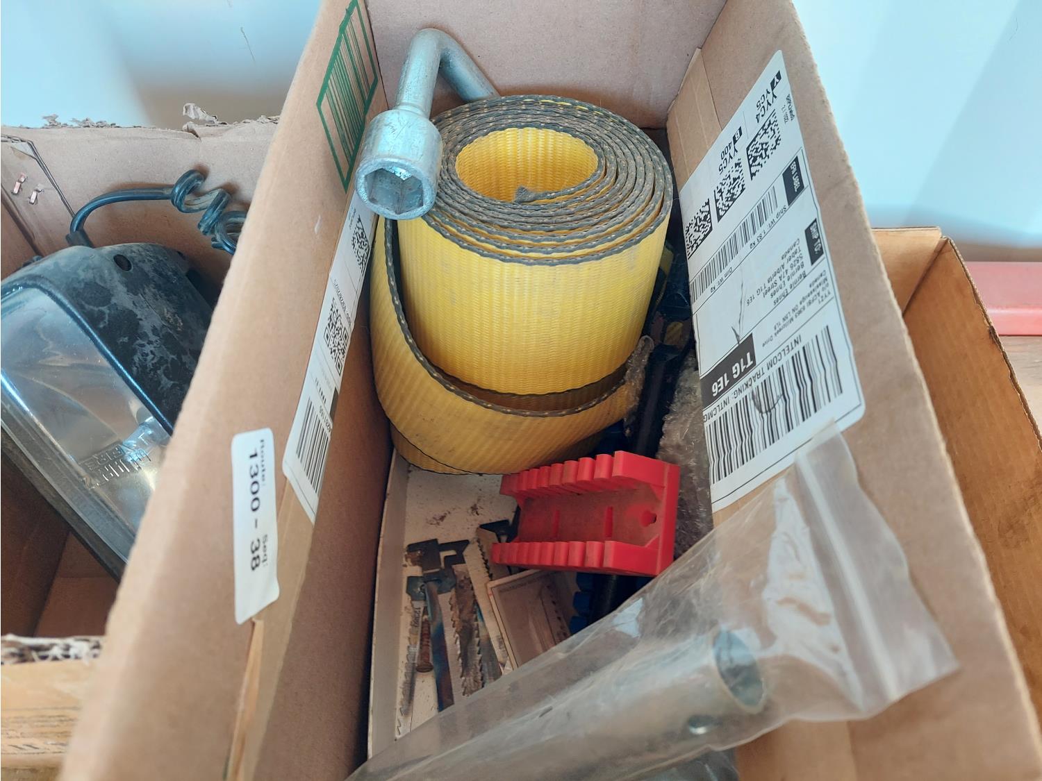 includes 120v drill, 12V spot light, 2 inch straps, and miscellaneous drill bits
