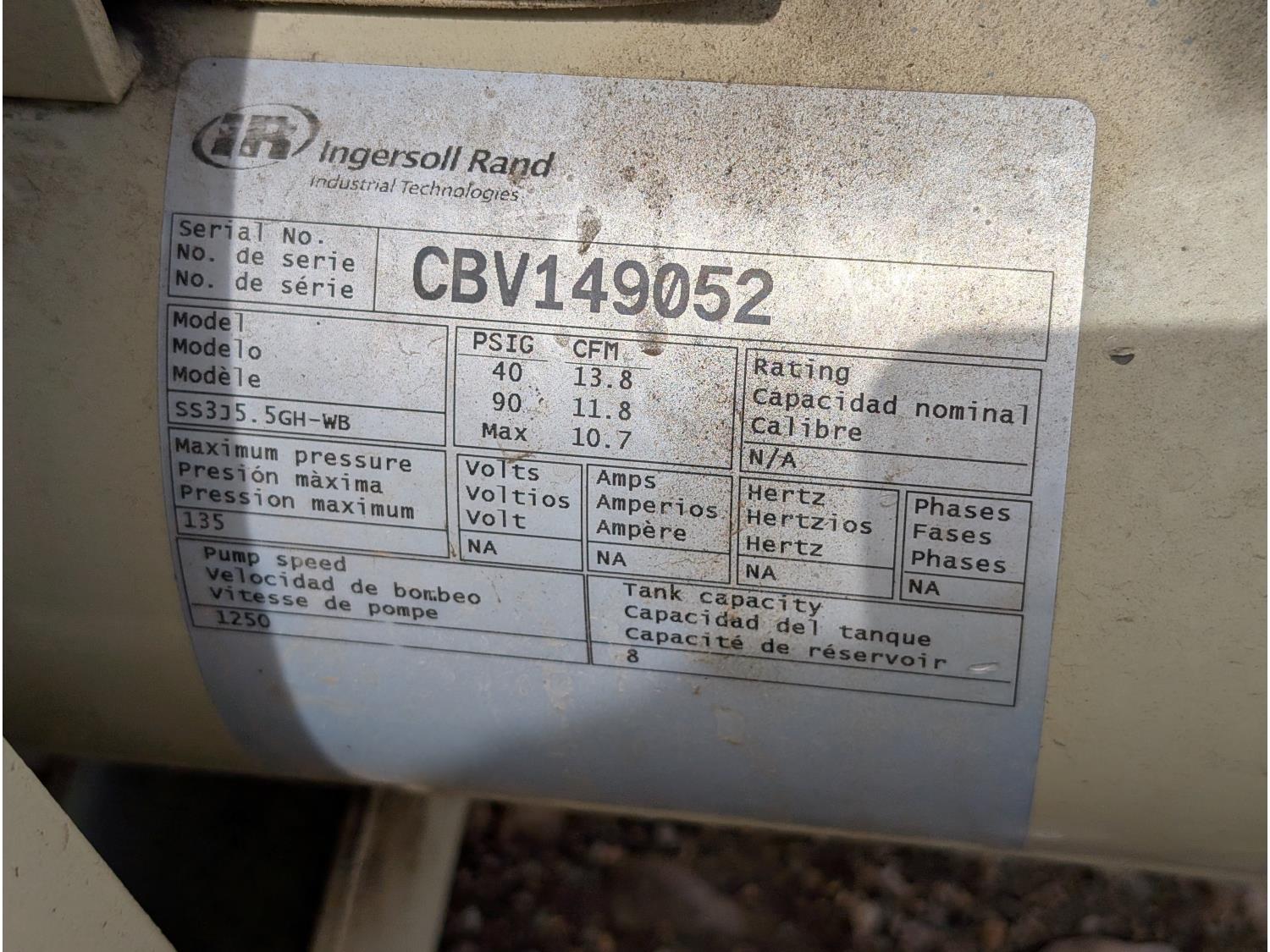 1450 Ingersoll Rand SS3 5Hp Air Compressor