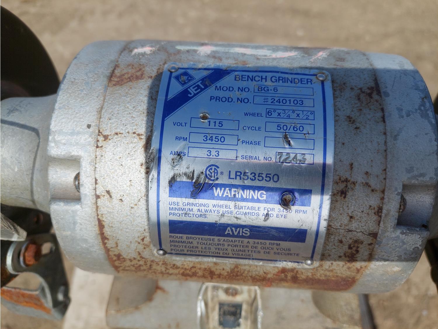 1393 Jet BG-6 Bench Grinder w/ Stand