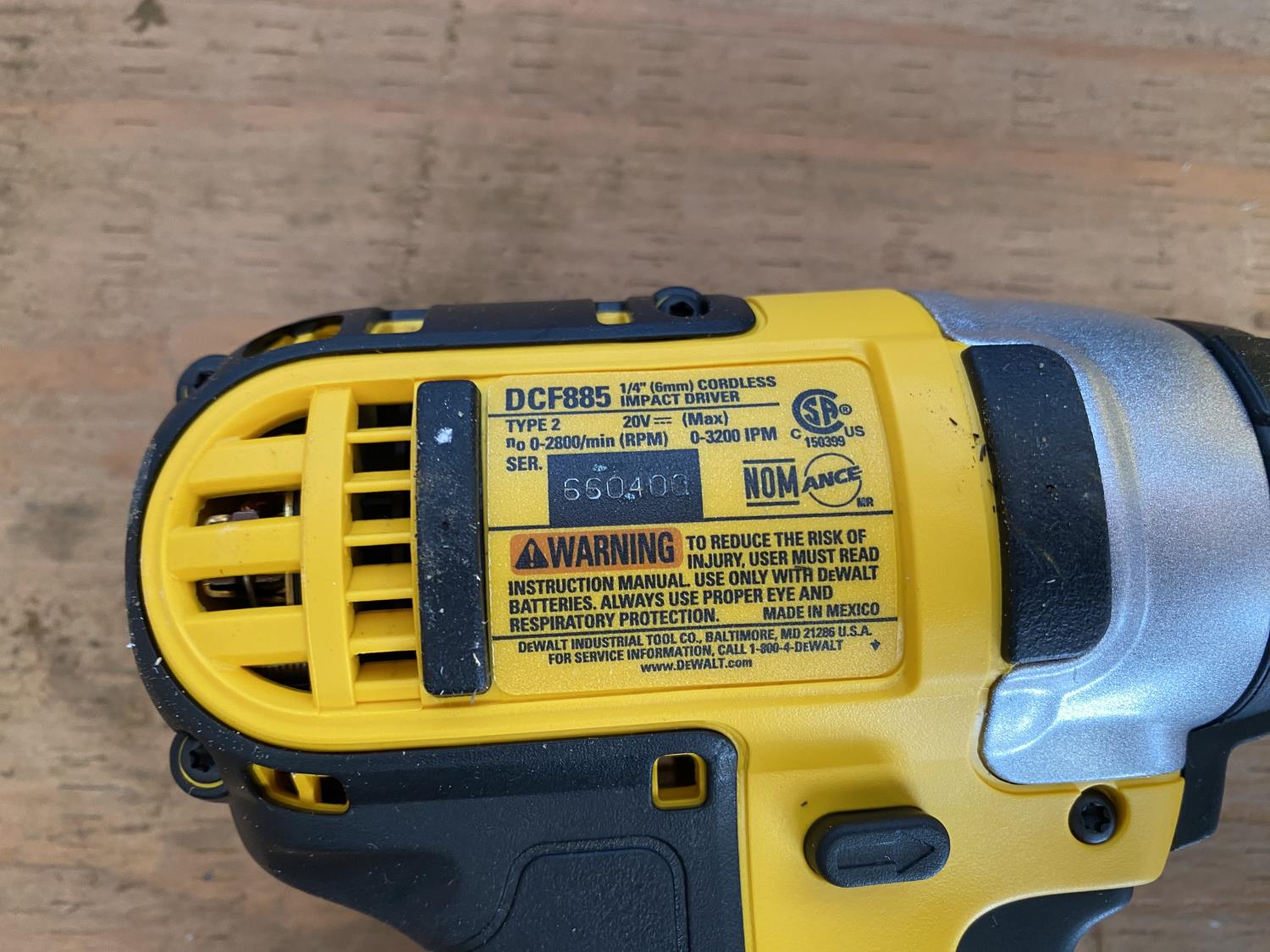 DCF885 1/4 inch impact driver, DCD785 1/2 inch Drill, includes tool bag