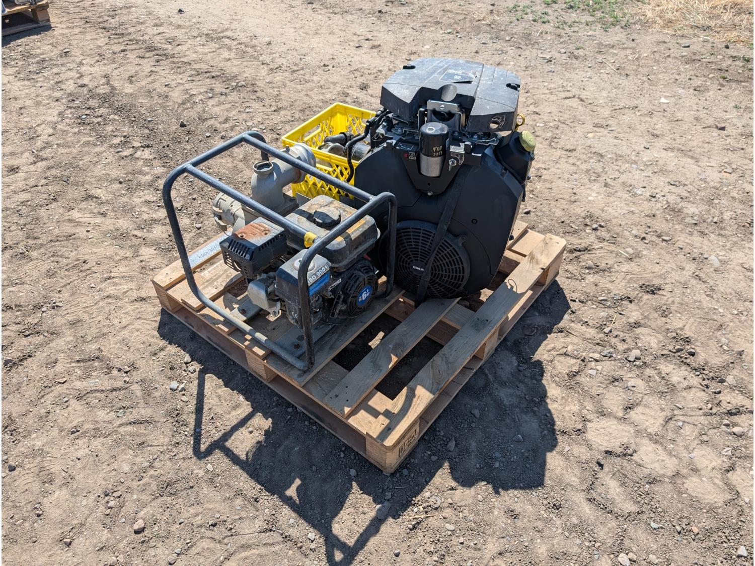 Qty of (1) Kohler 35 HP 999 cc engine, Qty of (1) Powerfist 6.5 HP engine w/ water pump head, 3.5 inch diameter inlet, 4 inch diameter outlet, pump model 80