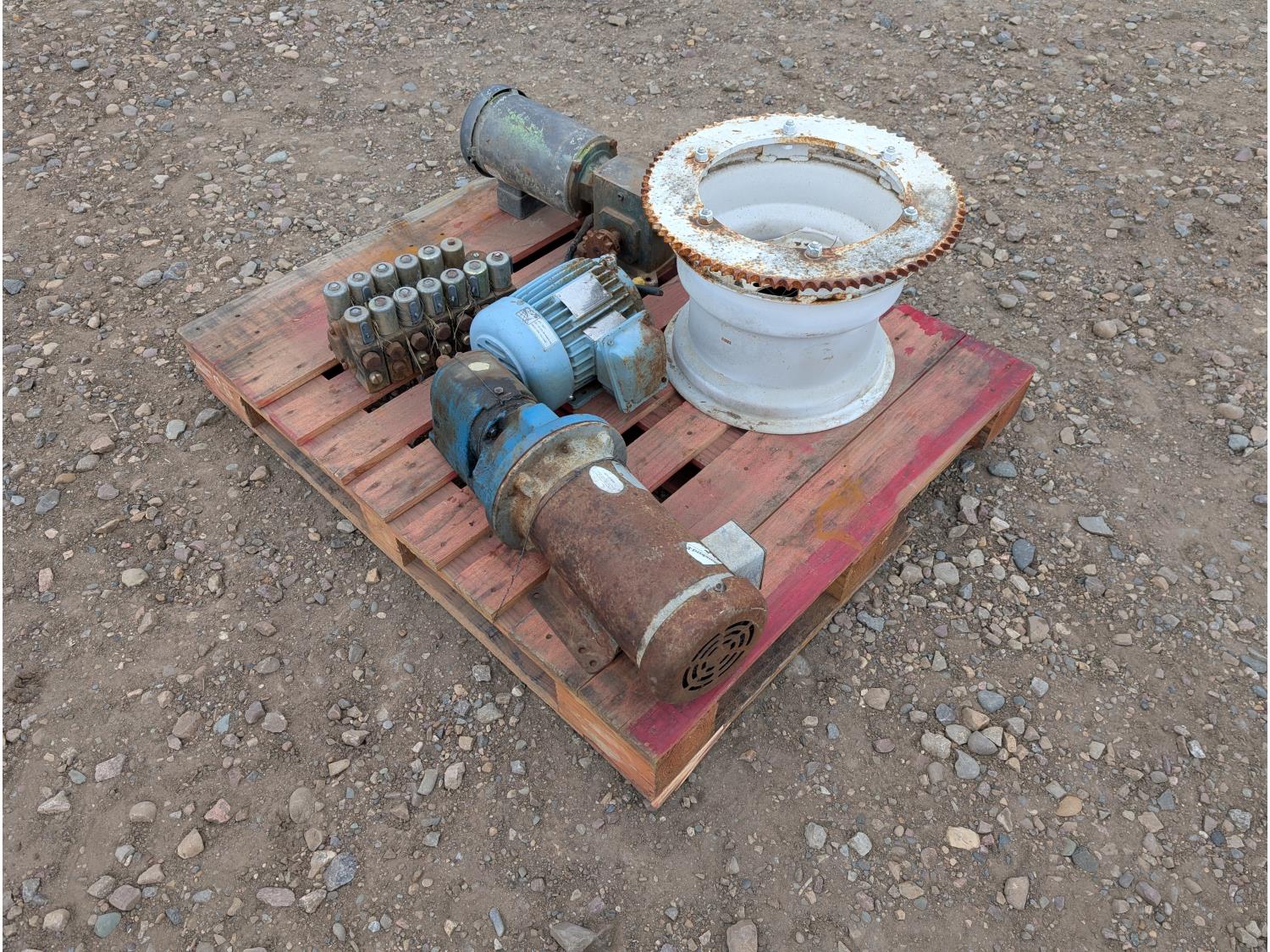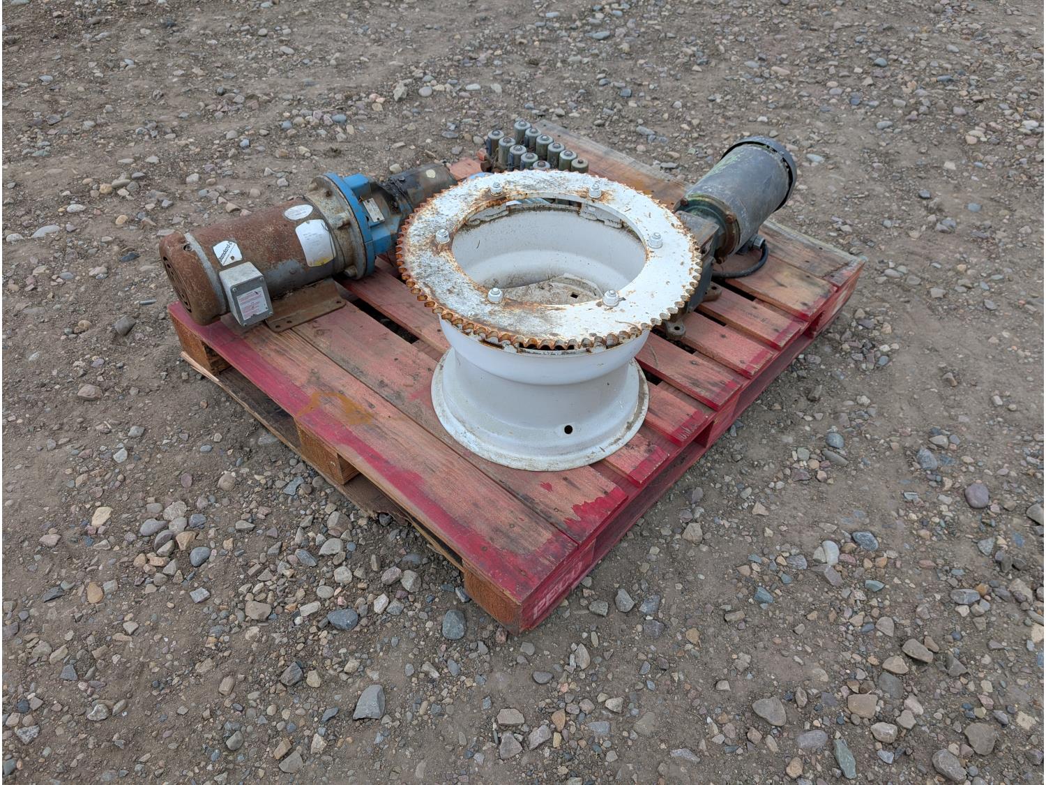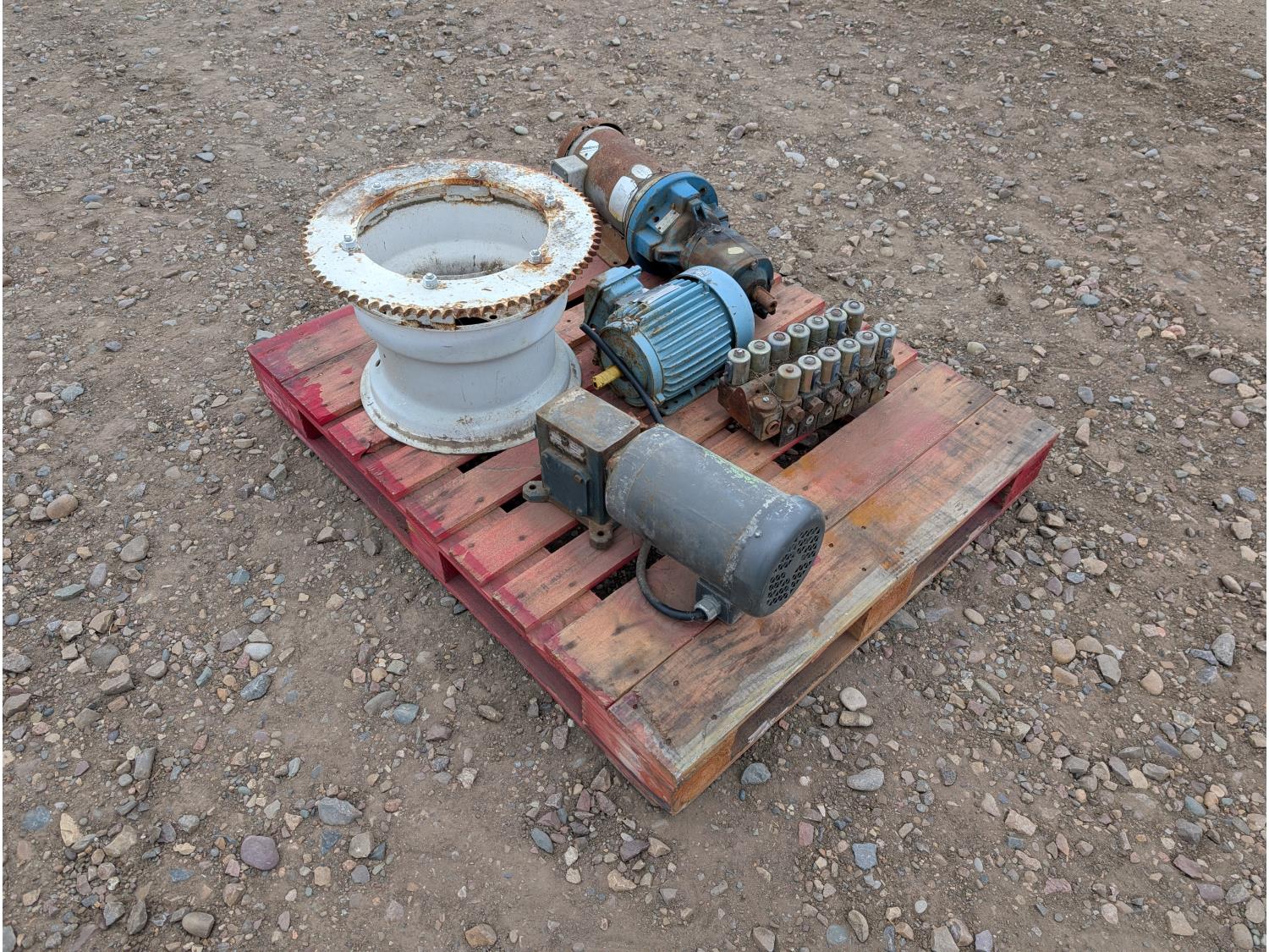 Qty of (1) Grove Gear Flexaline TM-0220-3, Qty of (1) Flender Himmel B-3 10.23:1 reduction motor, Qty of (1) Optim HE Plus AEHH-8N 2HP 3 phase motor, Qty of (1) scooper for spud wheel, Qty of (1) hydraulic power pack for pliers/spud diggers