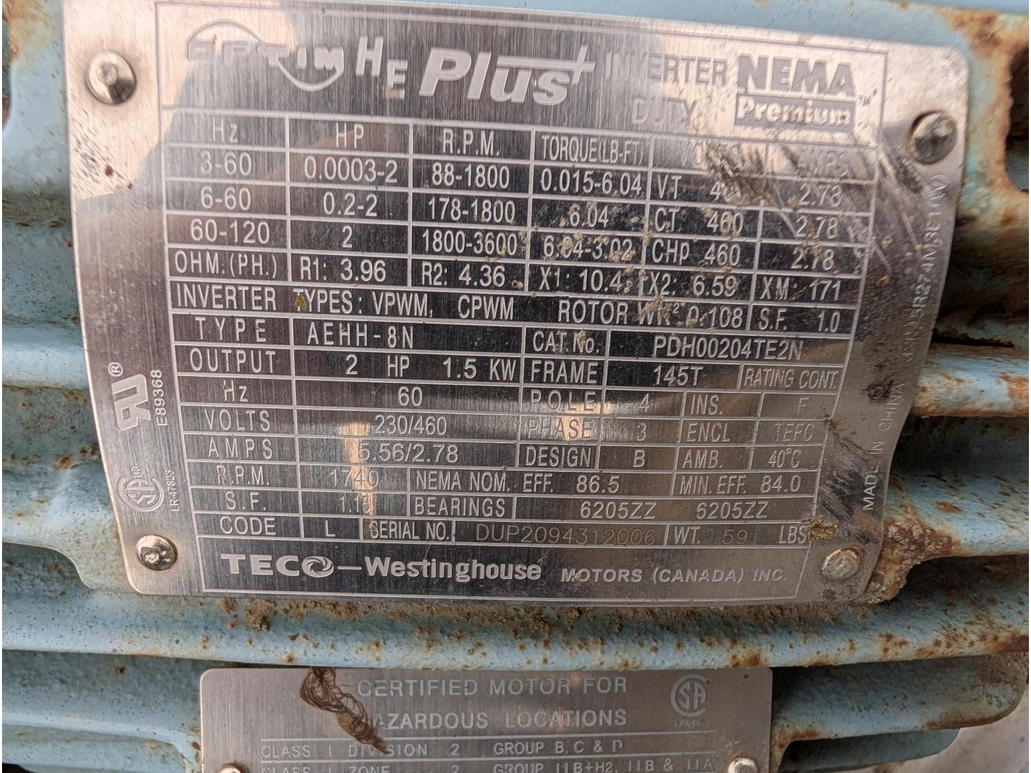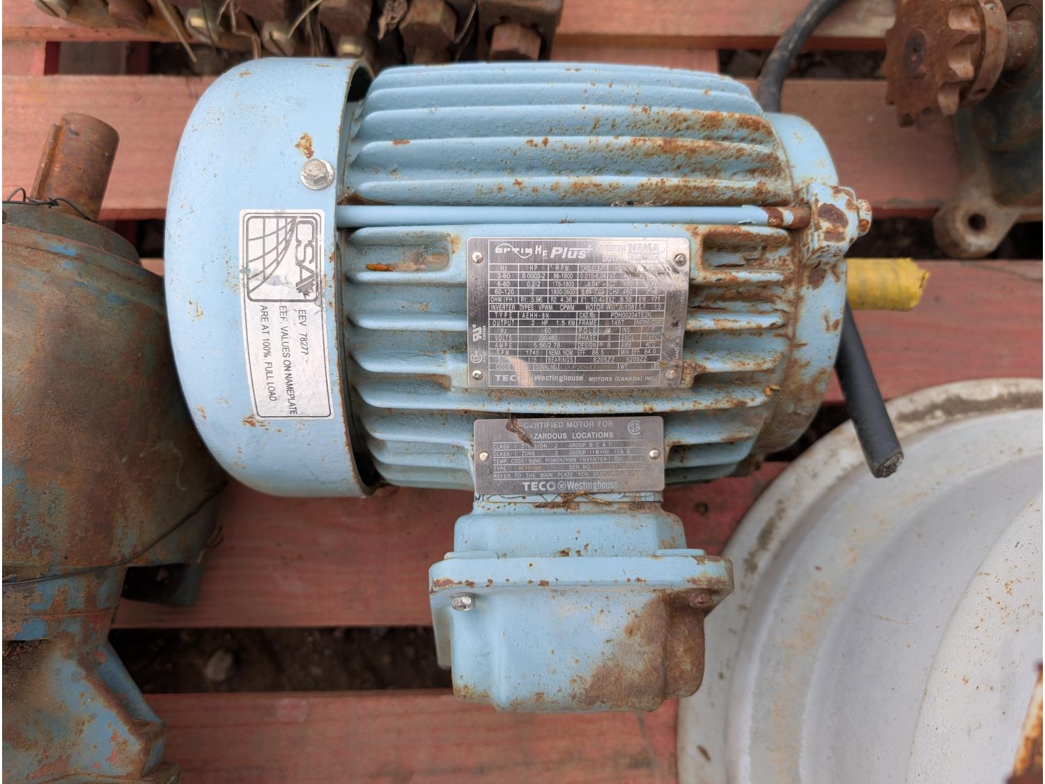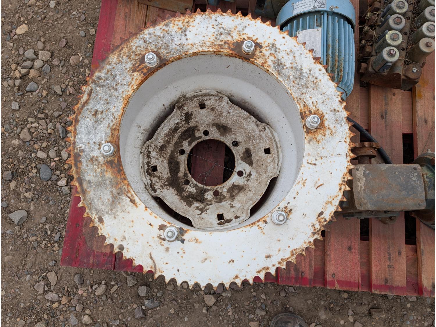 Qty of (1) Grove Gear Flexaline TM-0220-3, Qty of (1) Flender Himmel B-3 10.23:1 reduction motor, Qty of (1) Optim HE Plus AEHH-8N 2HP 3 phase motor, Qty of (1) scooper for spud wheel, Qty of (1) hydraulic power pack for pliers/spud diggers