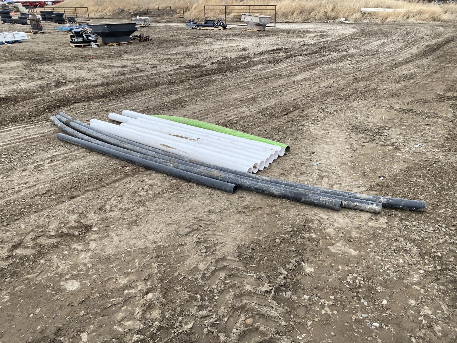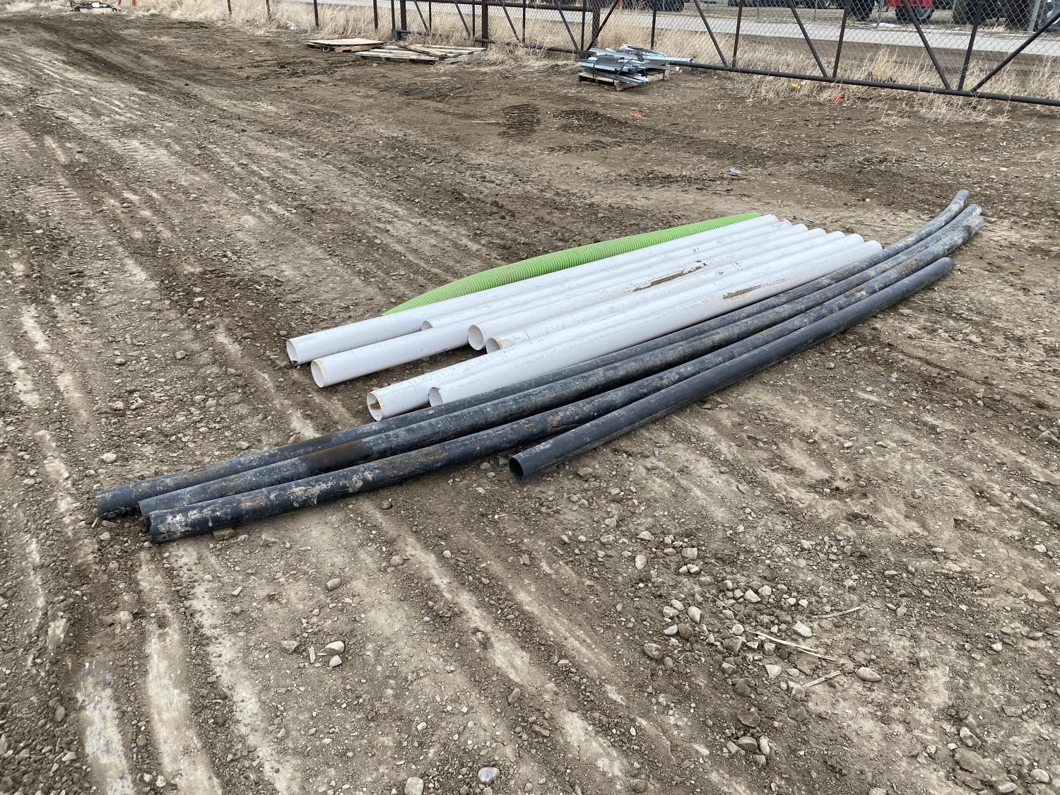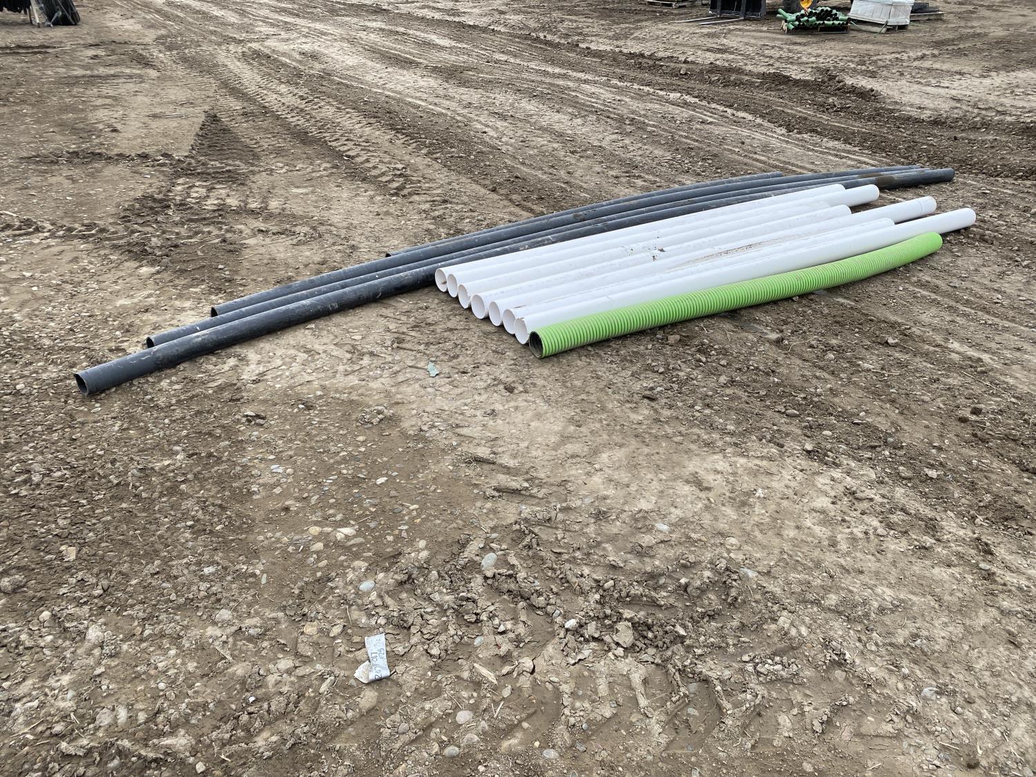 (6) PVC pipes lengths vary from 99 inch - 126 inch, (4) fuse pipe lengths vary from 120 inch - 216 inch, (1) 108 inch L 4 inch hose