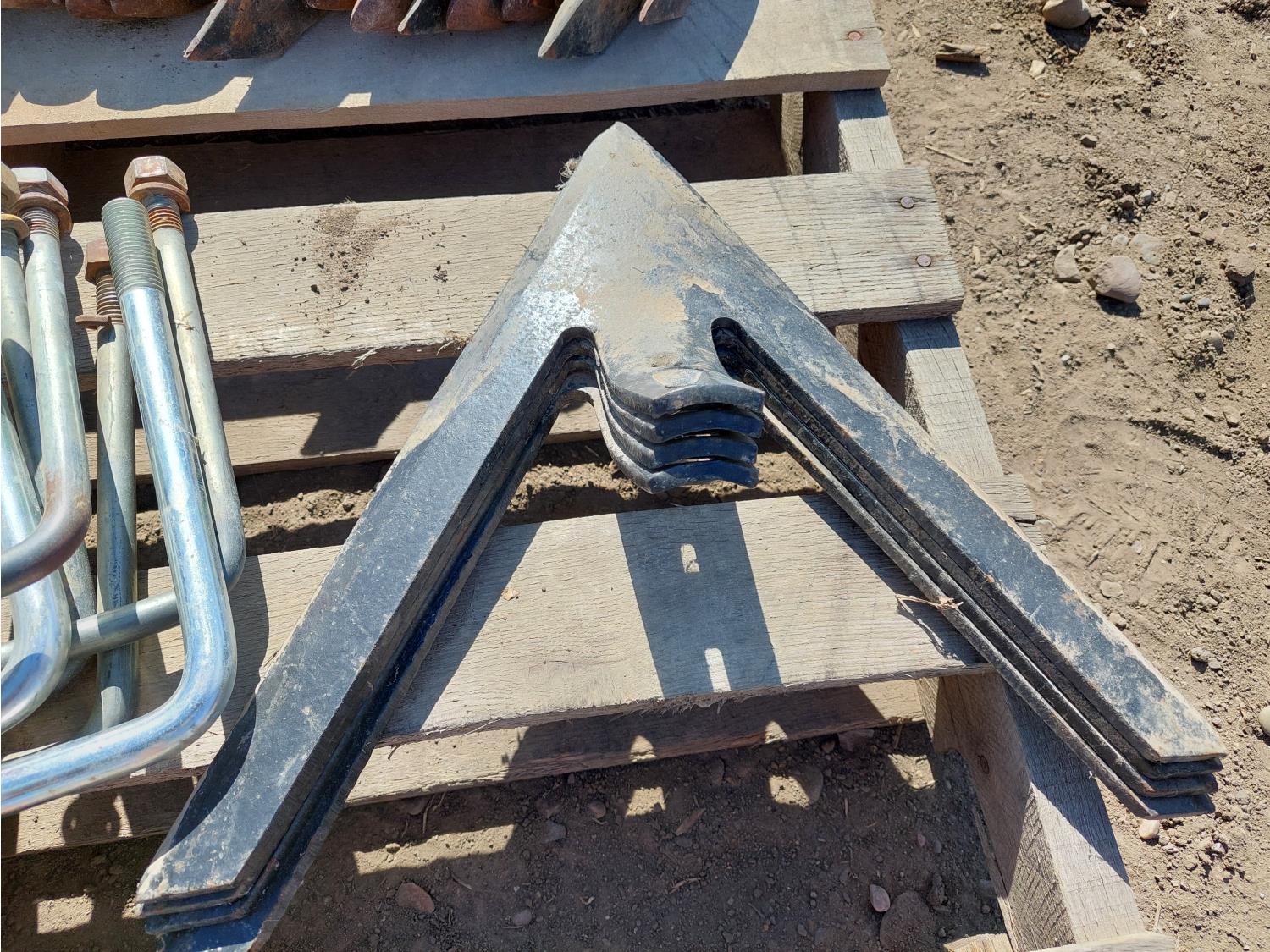(7) 16 inch shovels, (13) small row crop shovels, (32) cultivator spikes, (8) U clamps