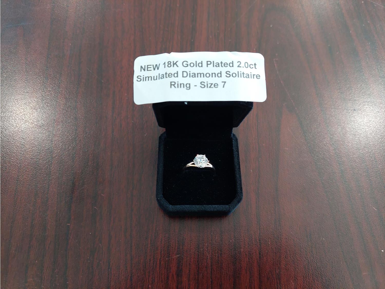 1023 Smartlife 18K Gold Plated 2.0ct Simulated Diamond Solitaire Ring (Unused)