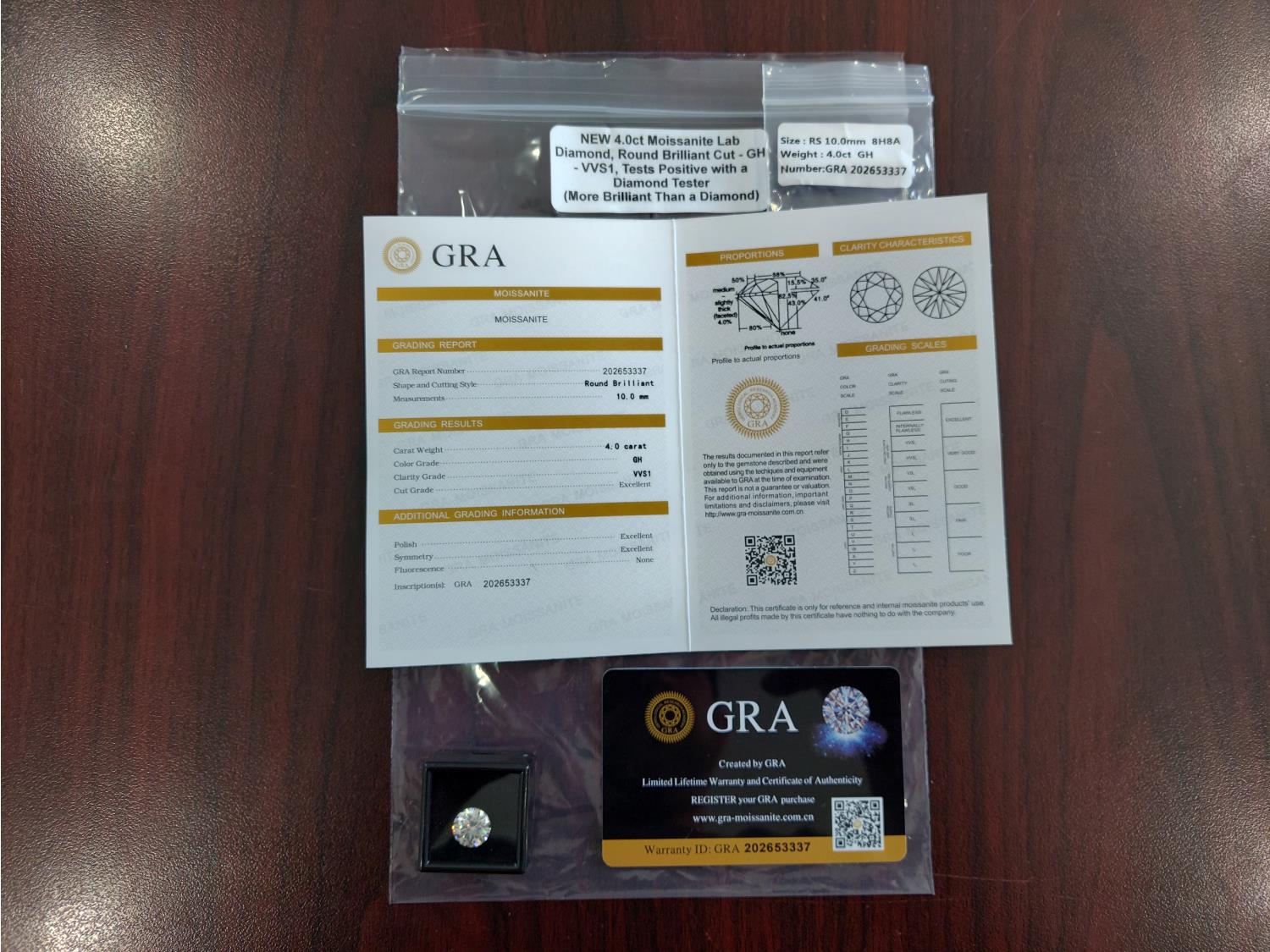 1038 Smartlife 4.0ct Moissanite Round Brilliant Cut Lab Diamond (Unused)