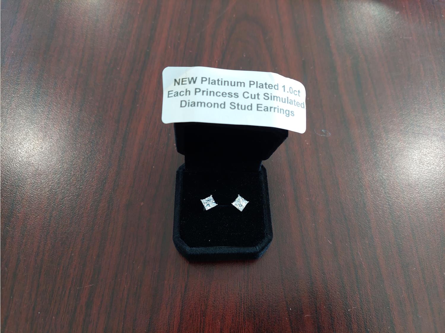 1030 Smartlife Platinum Plated 1.0ct Princess Cut Simulated Diamond Stud Earrings (Unused)