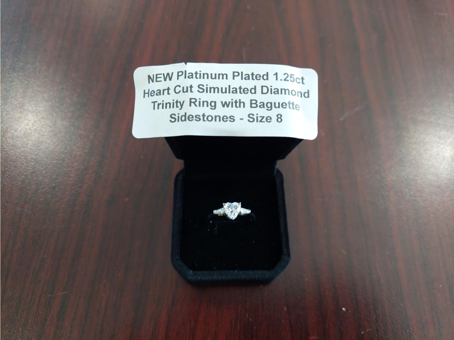 1025 Smartlife Platinum Plated 1.25ct Heart Cut Simulated Trinity Ring (Unused)