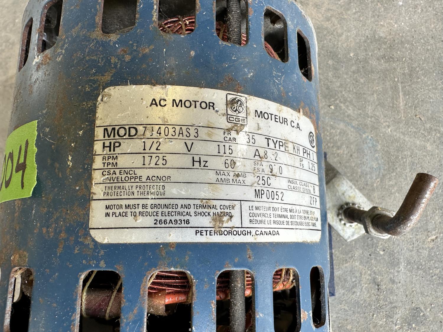 1725 RPM, 115V, single phase