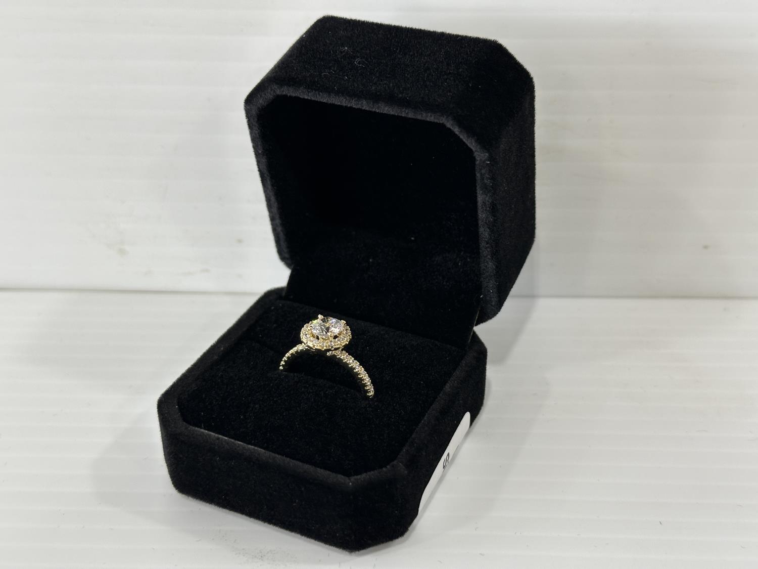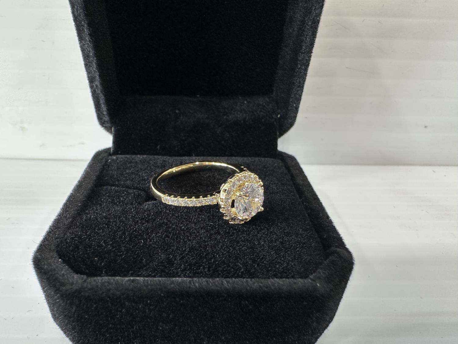 5009 Smartlife 14K Gold Plated 1.0 Ct Simulated Diamond Halo Ring - Size 6 (Unused)