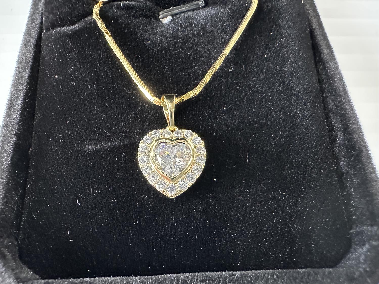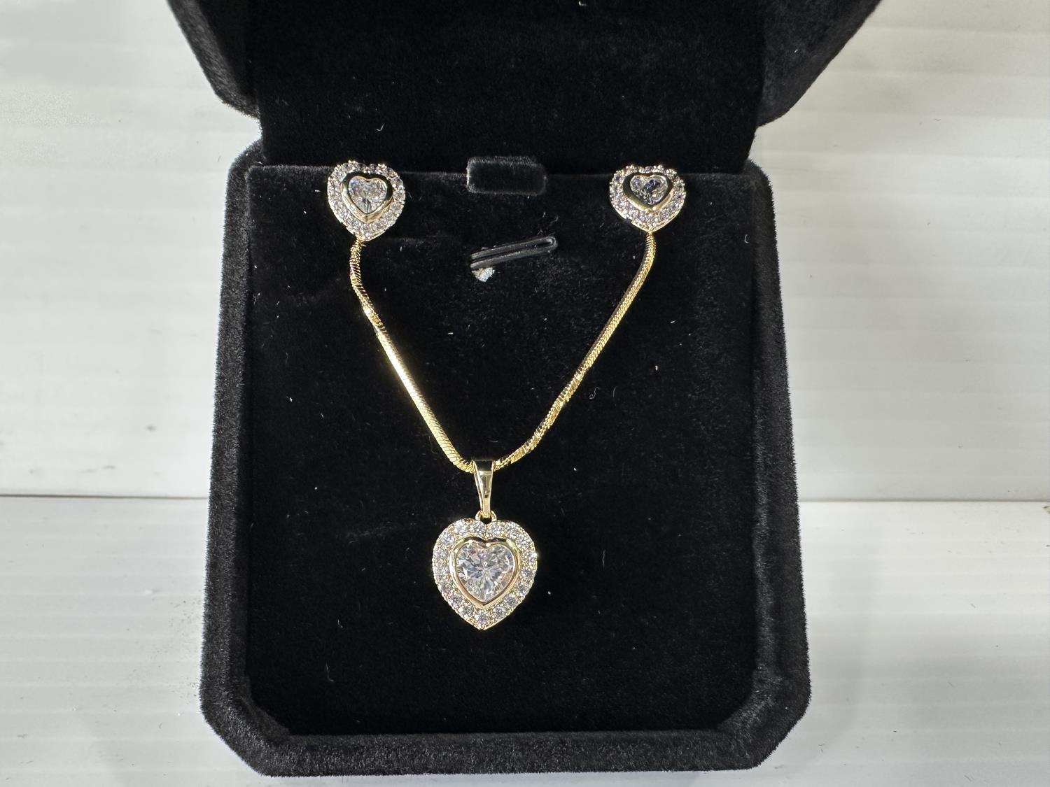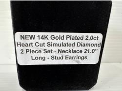 5016 Smartlife 14K Gold Plated 2.0 Ct Heart Cut Simulated Diamond 2 Piece Set (Unused)