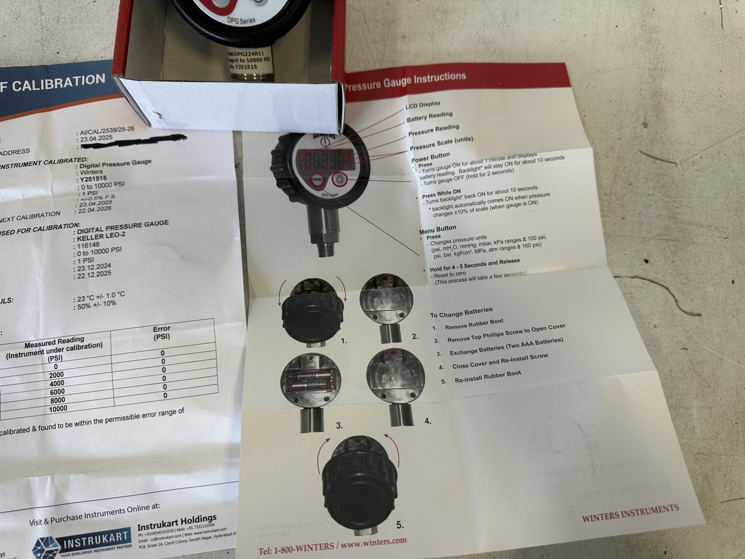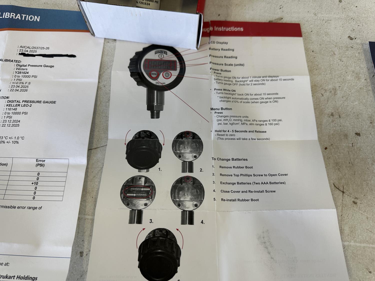 5065 (2) Winters 0-10,000 PSI Digital Gauges (Unused)