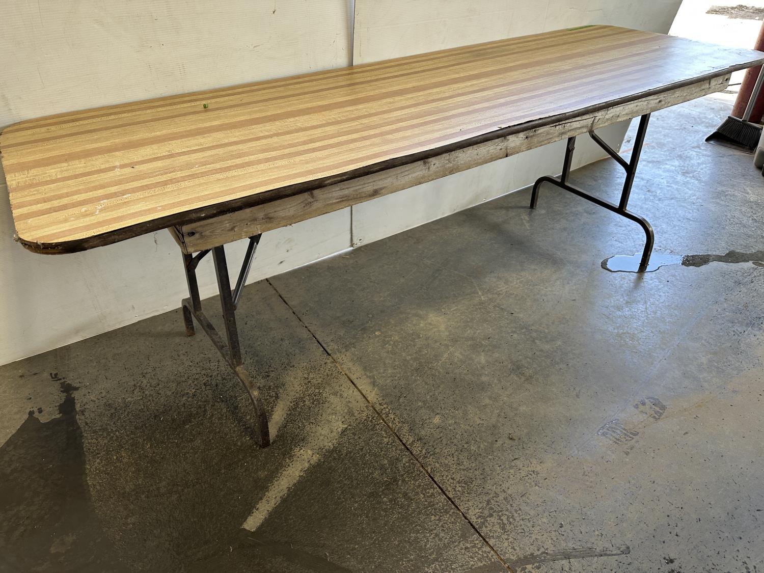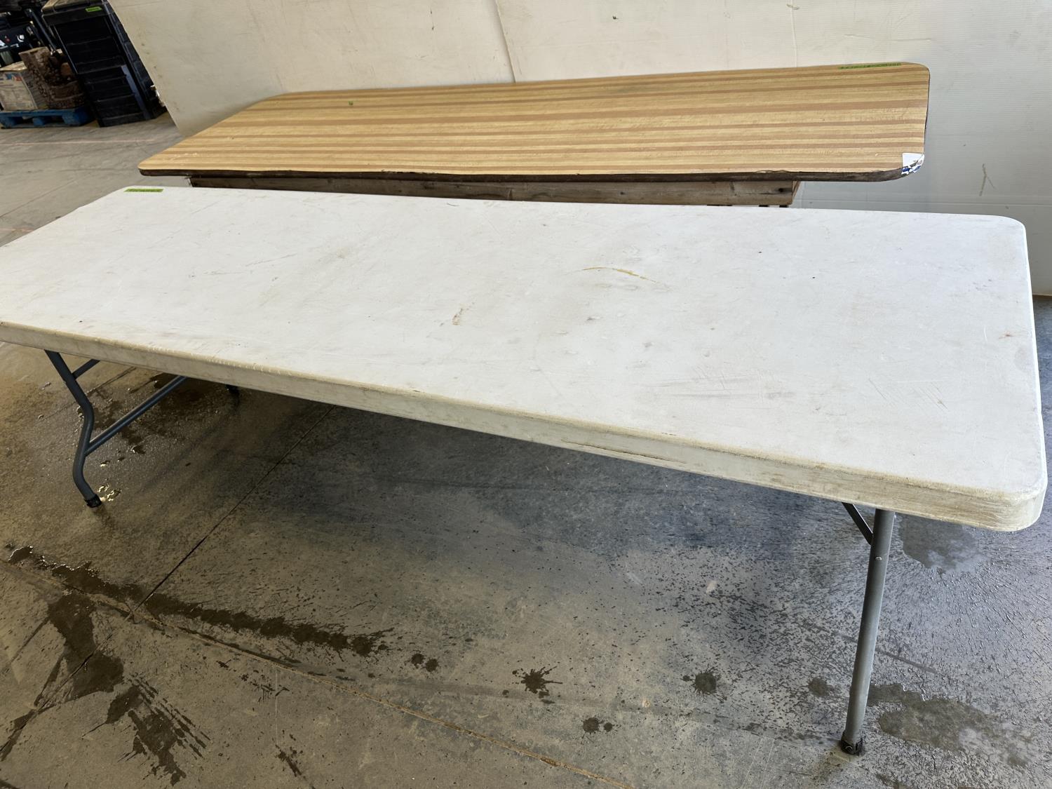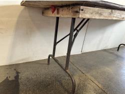 Wooden table 90 inch w x 30 inch d x 30 inch h, plastic 96 inch w x 30 inch d x 29 inch h, folding plastic table 72 inch w x 29 inch d x 29 inch h