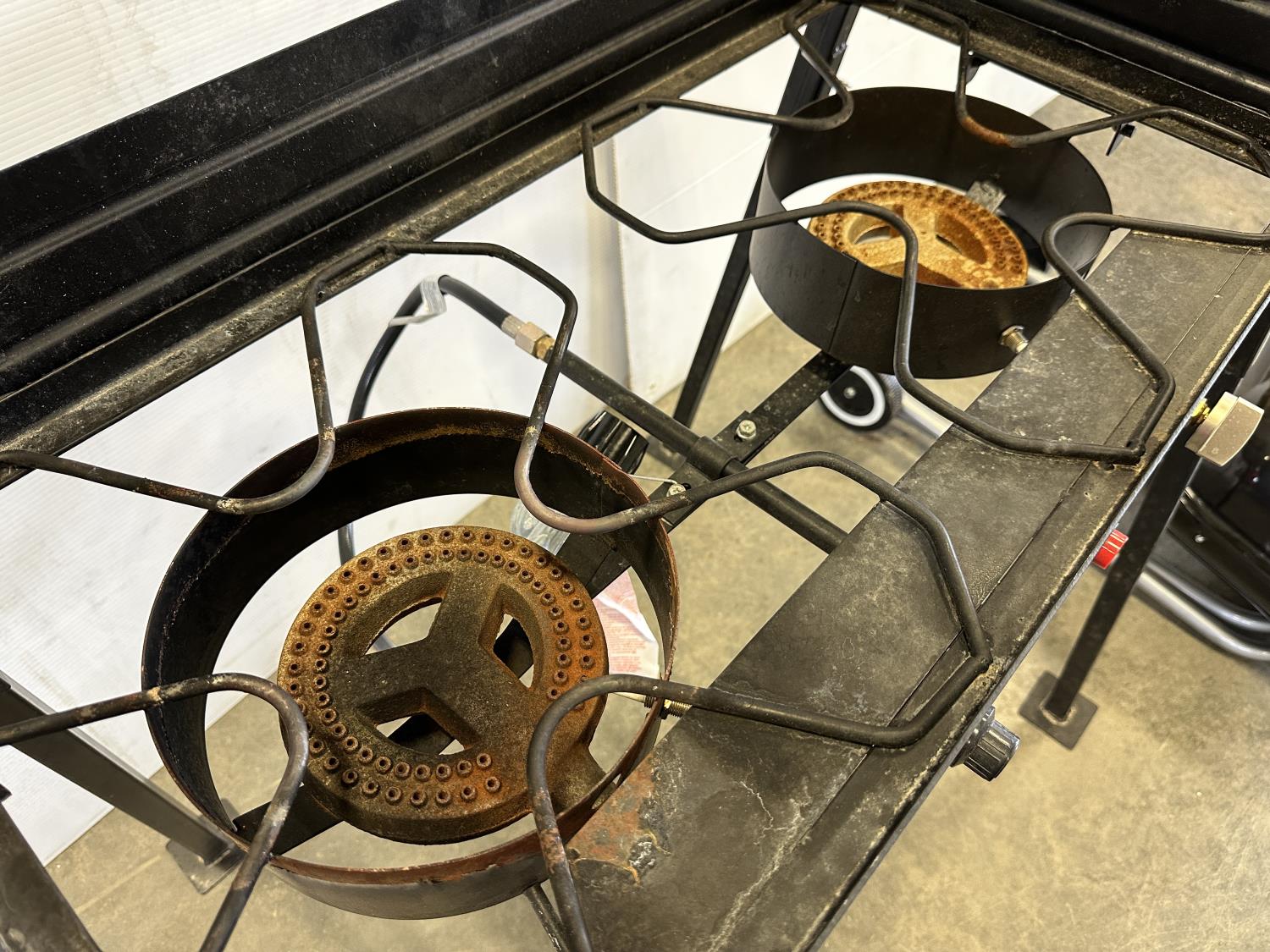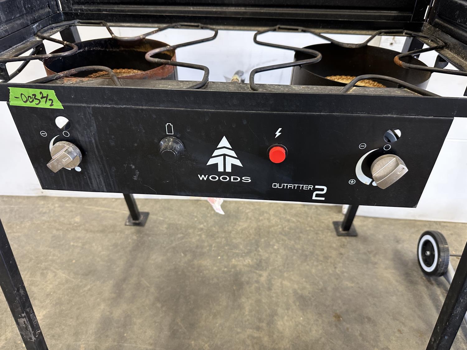5187 Master Chef Portable Charcoal Grill (Unused) and Woods Propane Double Burner Stove
