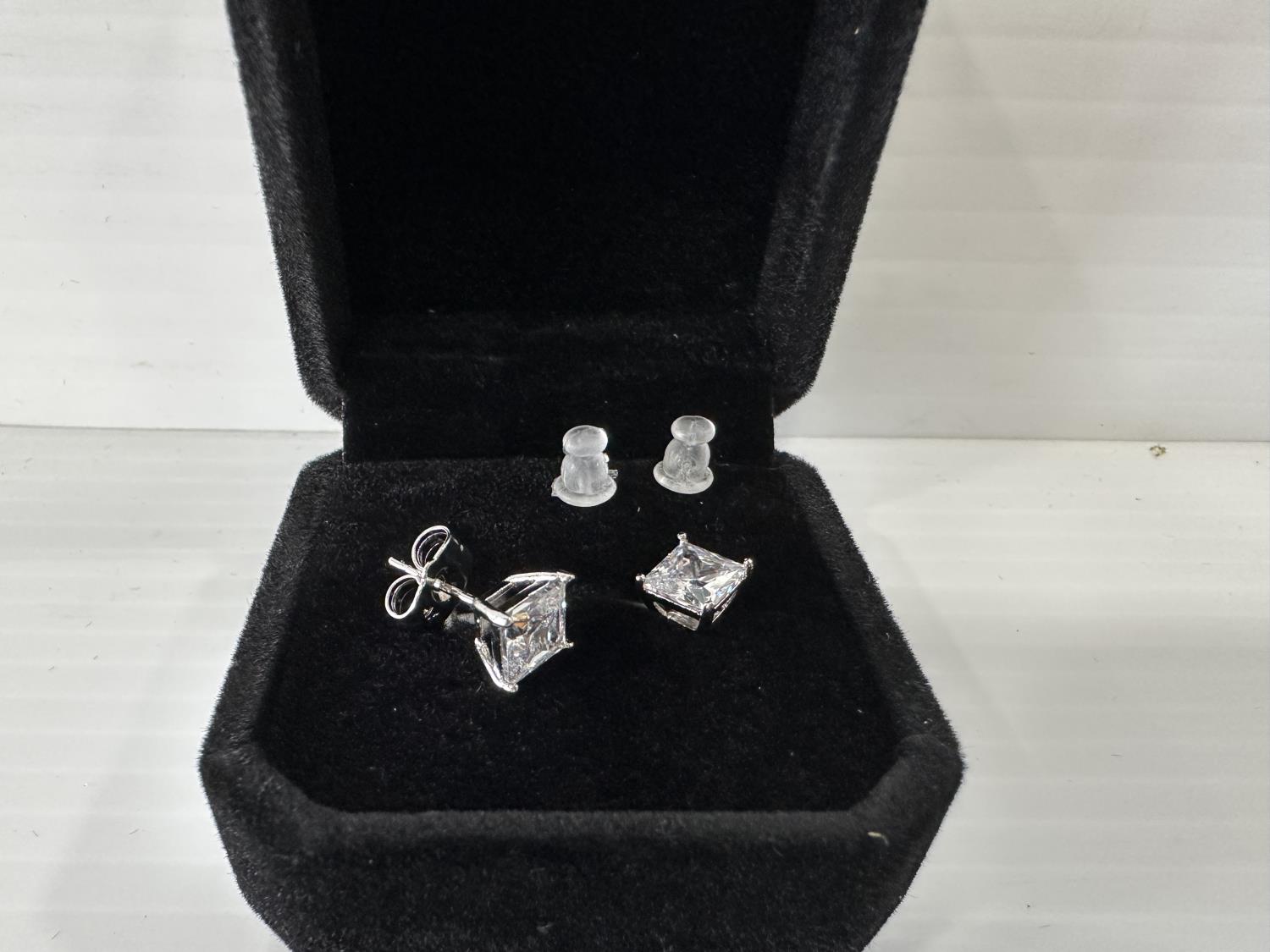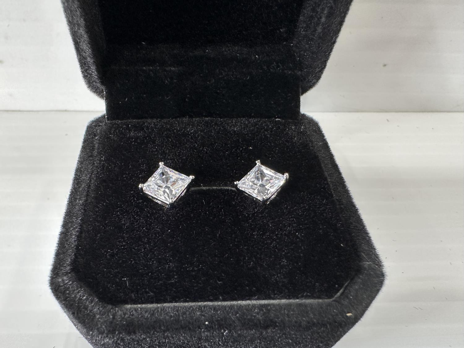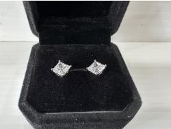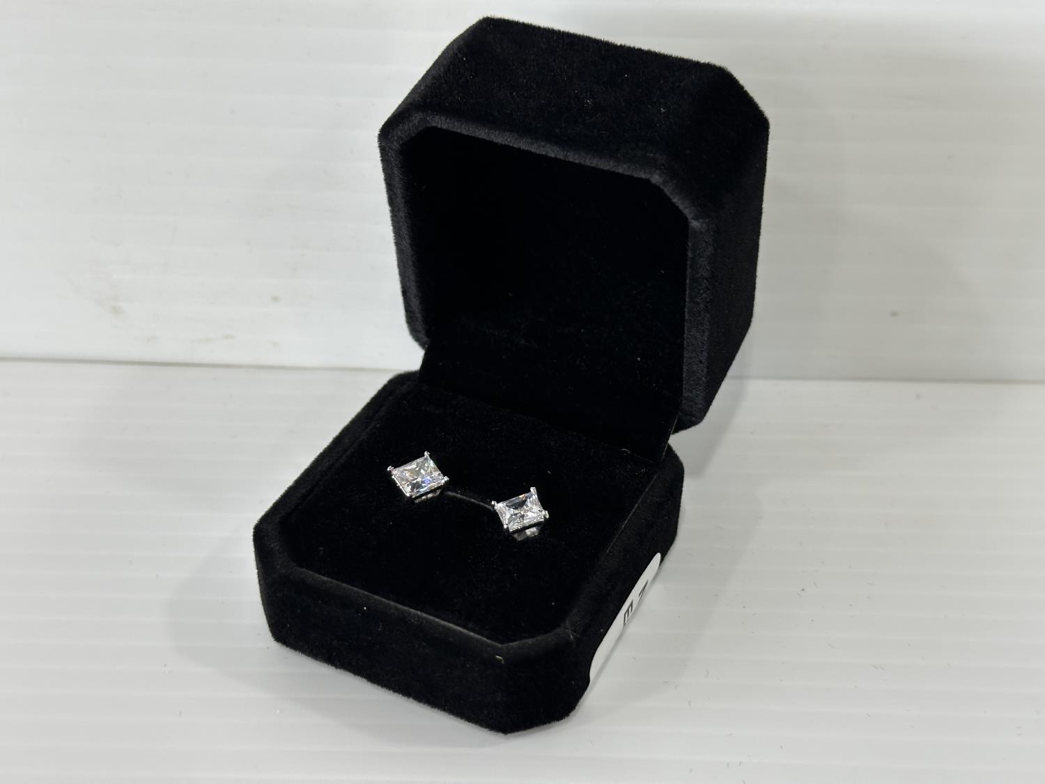 5014 Smartlife Platinum Plated 1.25 Ct Each Princess Cut Simulated Diamond Stud Earrings (Unused)