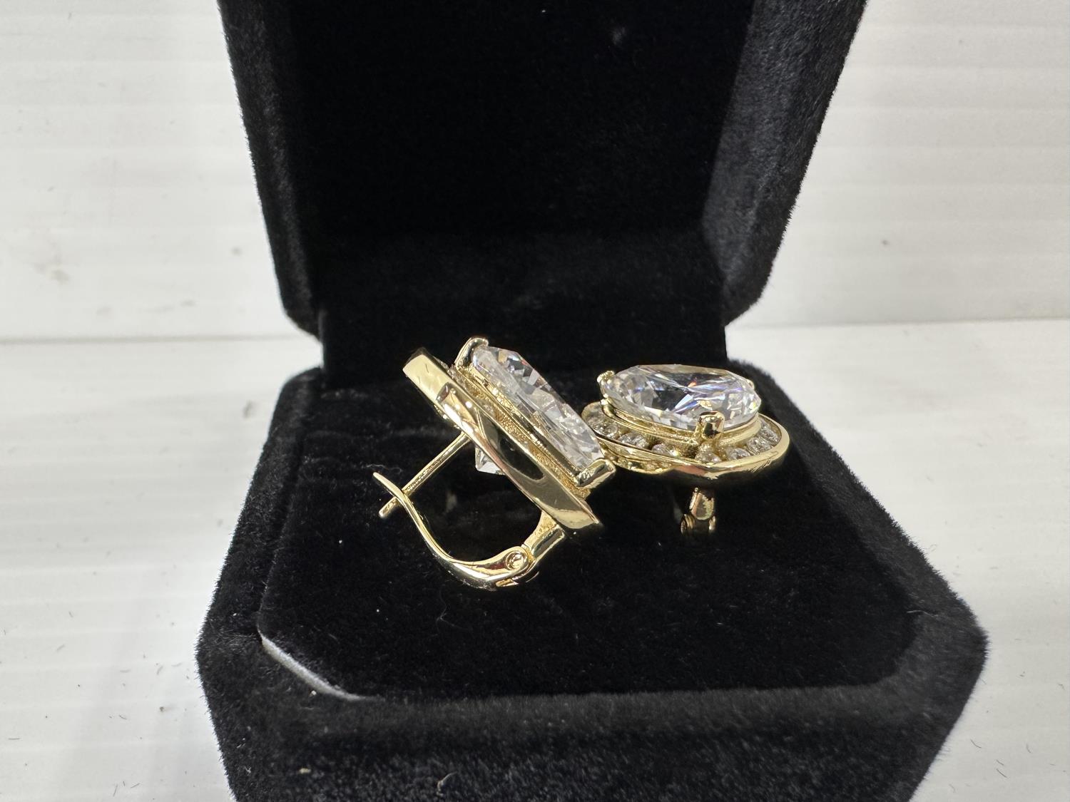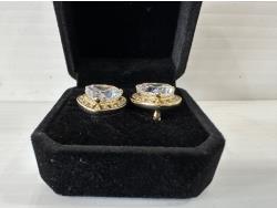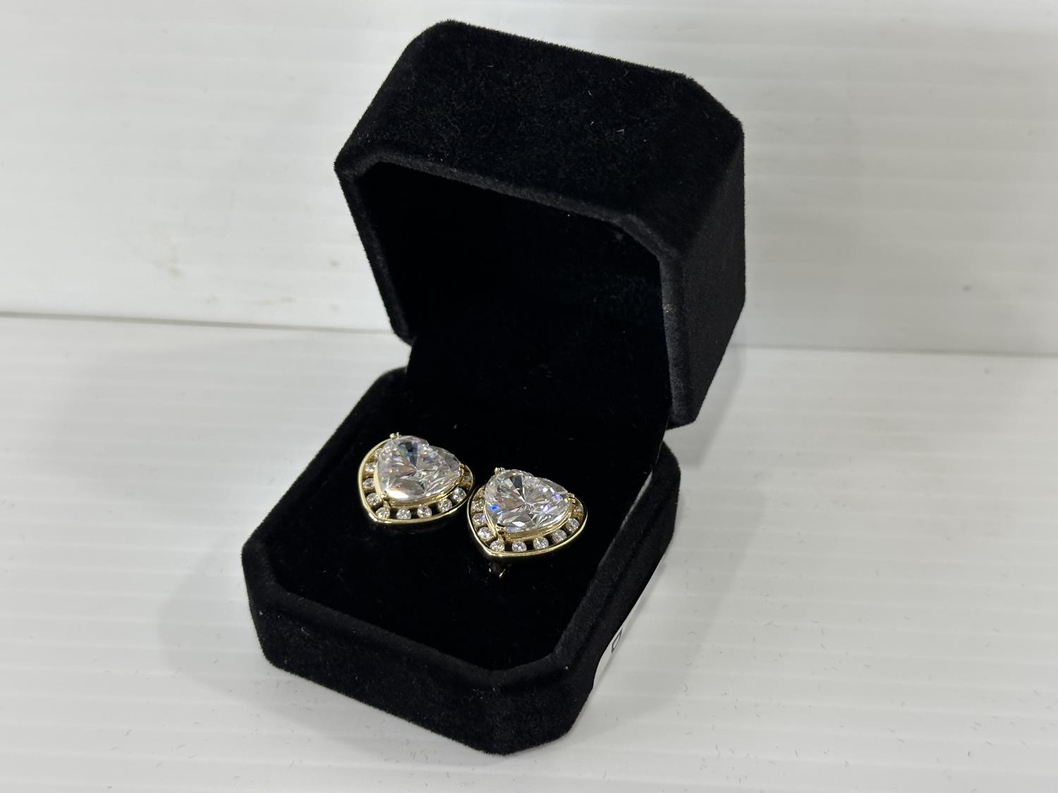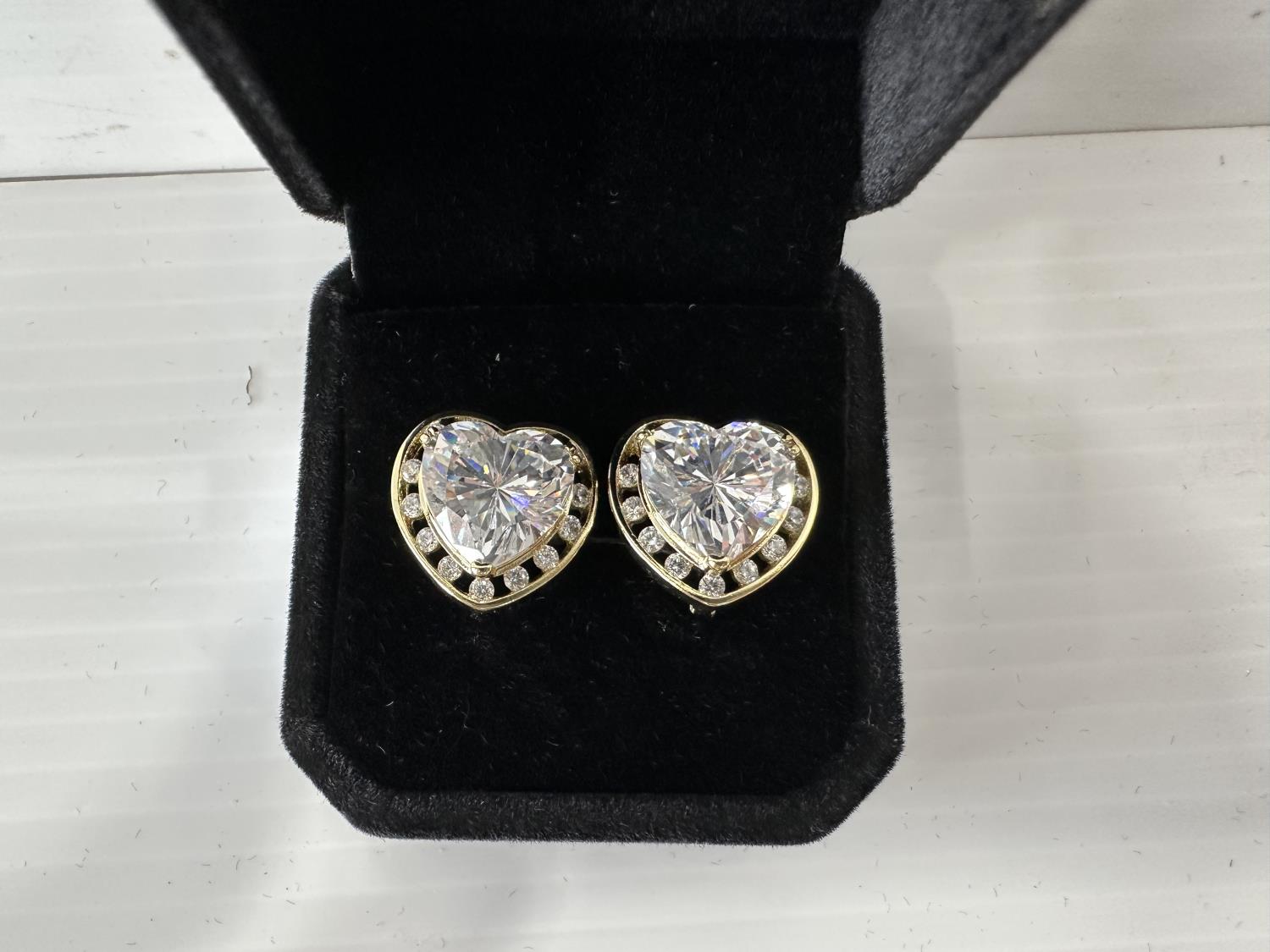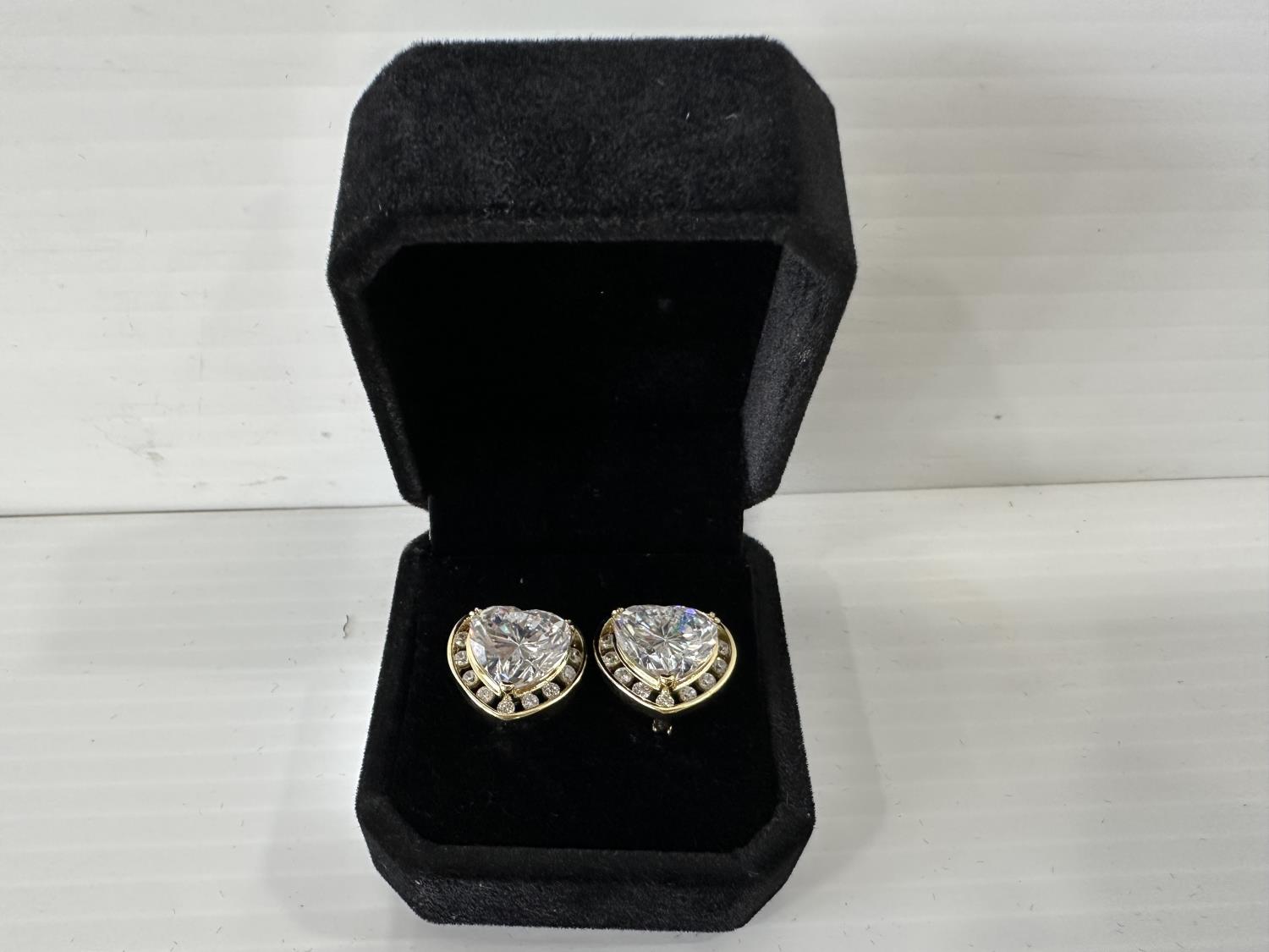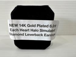 5012 Smartlife 14K Gold Plated 6.0 Ct Each Heart Halo Simulated Diamond Leverback Earrings (Unused)