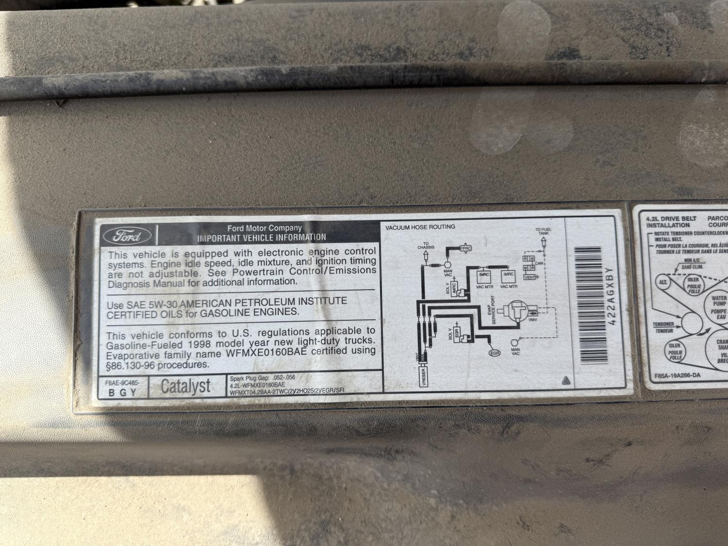 4,2 L, V6, gas, 5 speed manual transmission, P/W, P/L, A/C, upgraded stereo, 8 ft box