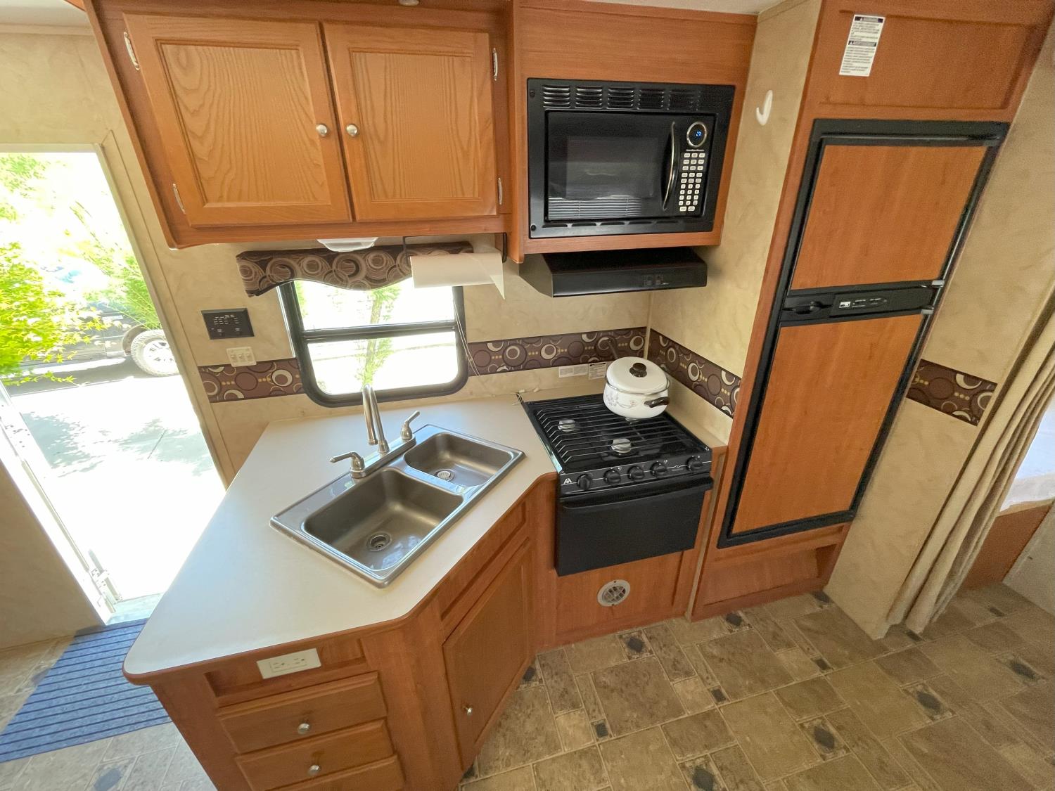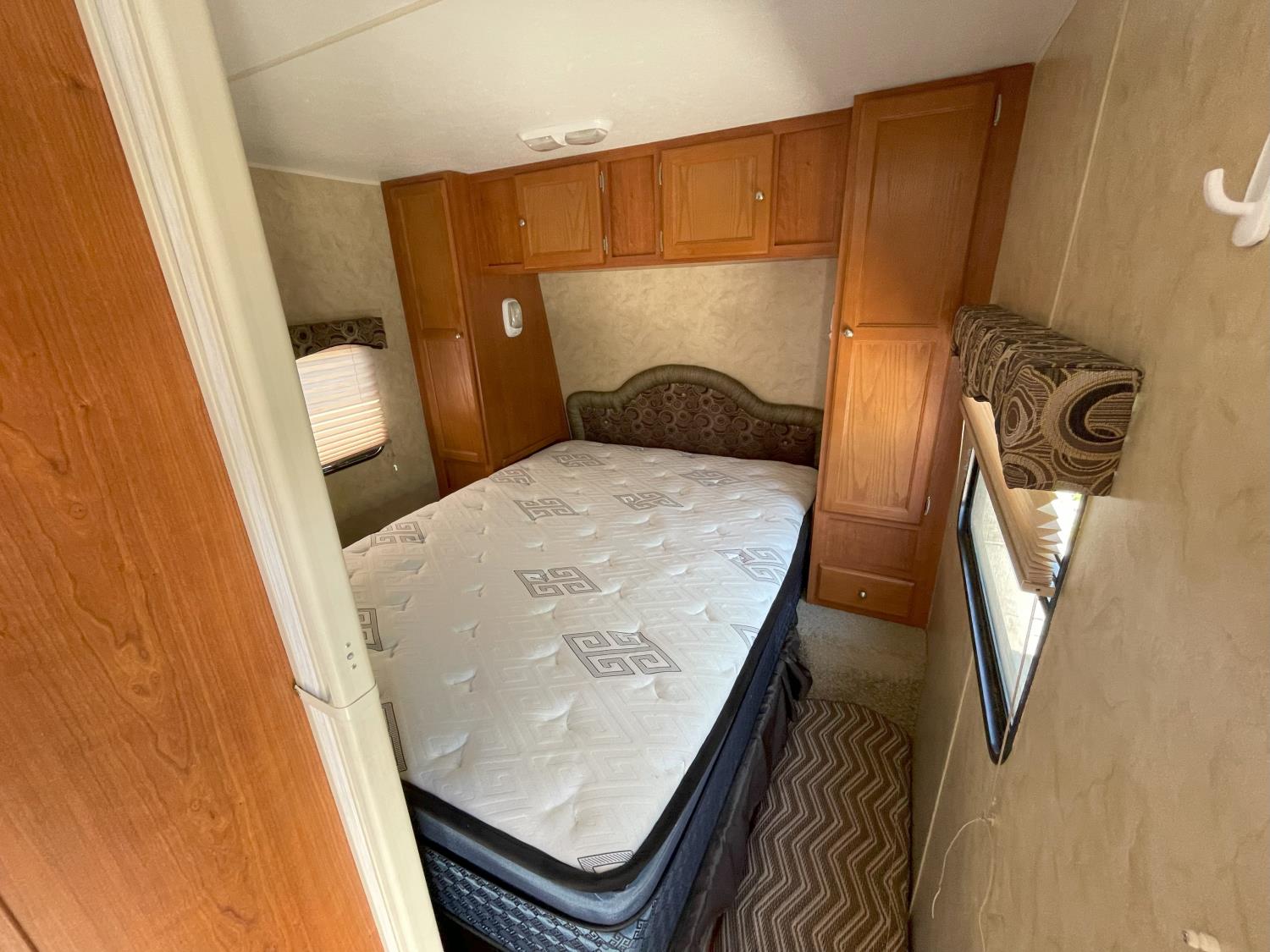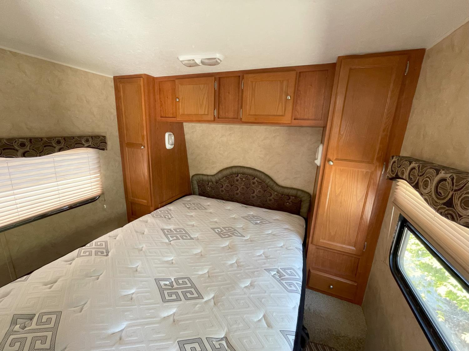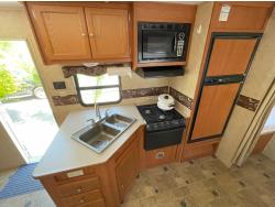 Sleeps 6, stove, fridge, microwave, full bath, master bedroom, A/C, 1 slide, manual awning, torsion suspension, electric brakes, 205/75R14 tires