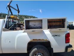 6.0 L, V8, gas, 6 speed automatic transmission, A/C, aluminum headache rack, 34 gallon fuel tank, aluminum toolbox, Slip tank, 265/75R16 tires