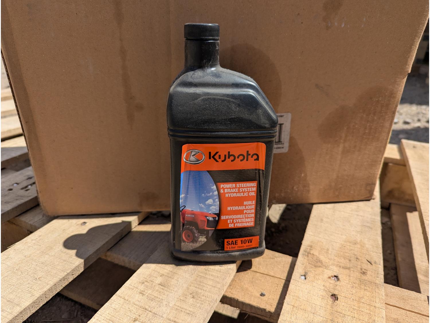 Kubota power steering & hydraulic oil, glass cleaner, thread locker, rust breaker, filters, grease gun parts, 48 inch baler net wrap