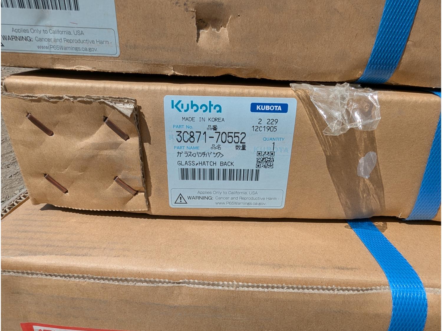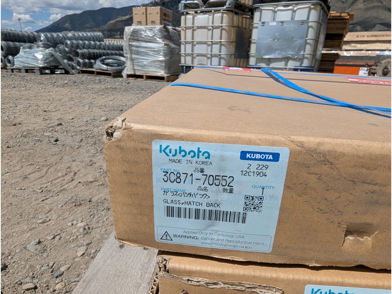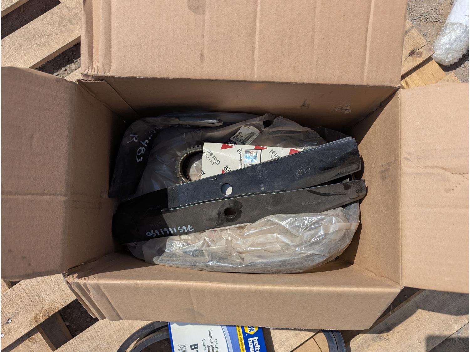 Belts, mower blades, gasket kits, handles, lights, glass for Kubota units and other assorted items