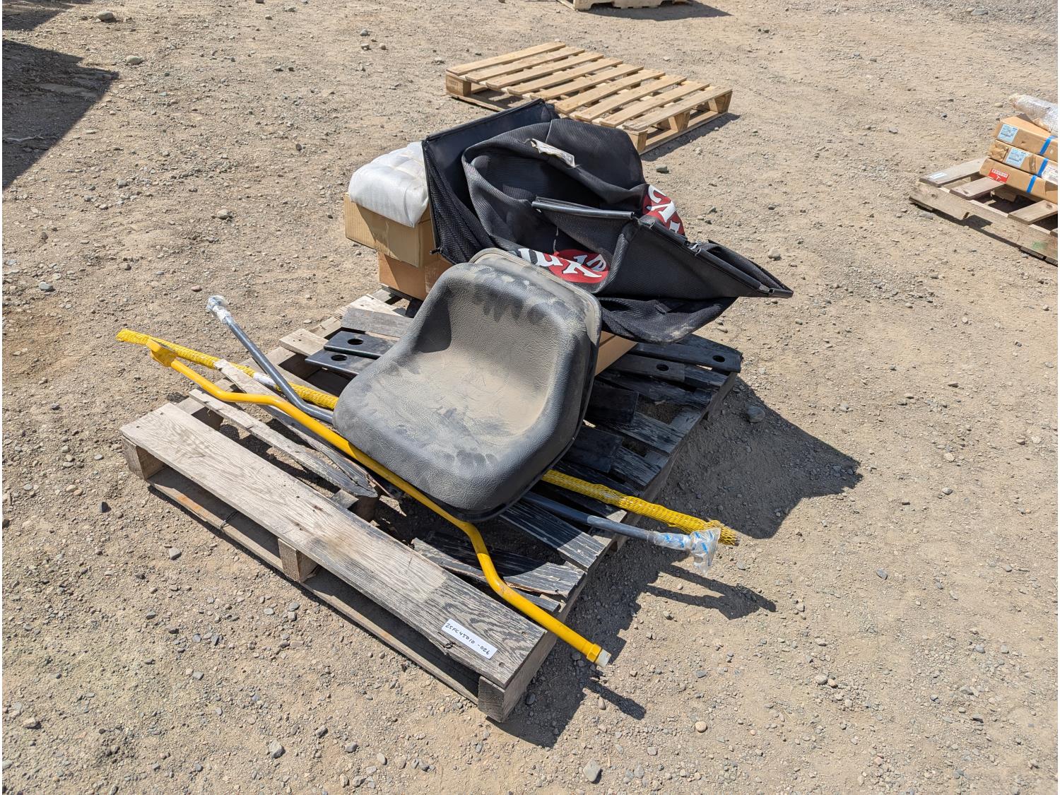Mower bags, universal seats, steel hydraulic lines, Kubota working light and other assorted items