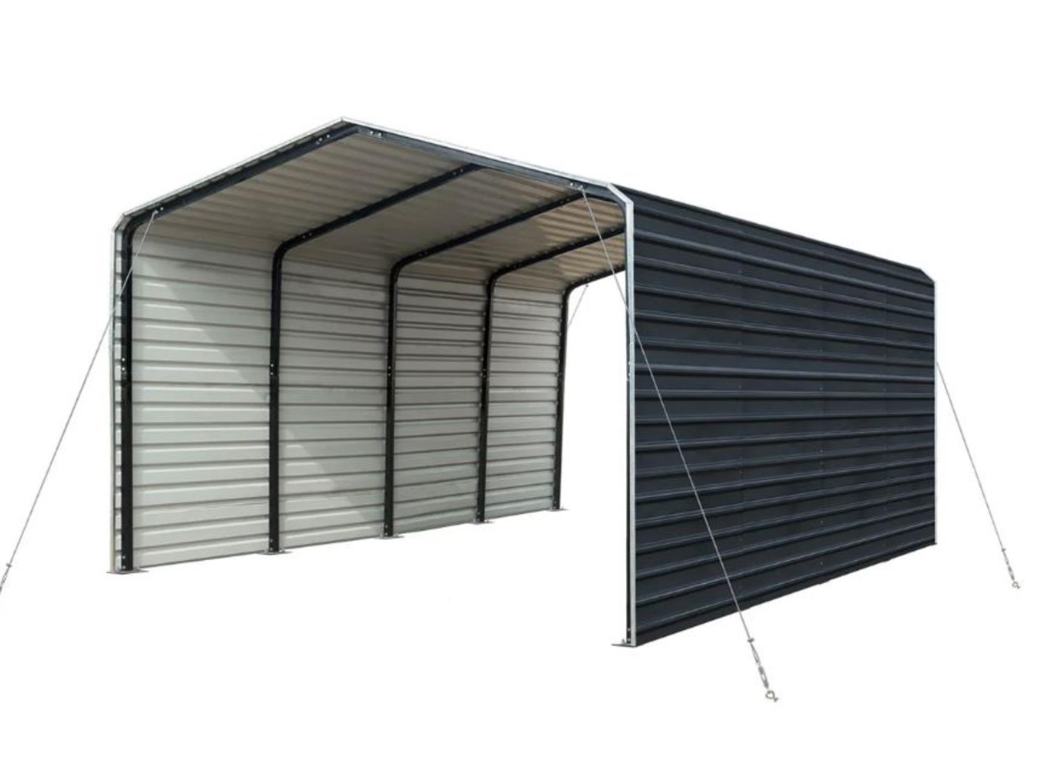 16 StanForge MSC1220F 12 Ft X 20 Ft Metal Shed Carport with 8 Ft Enclosed Sidewalls (Unused)