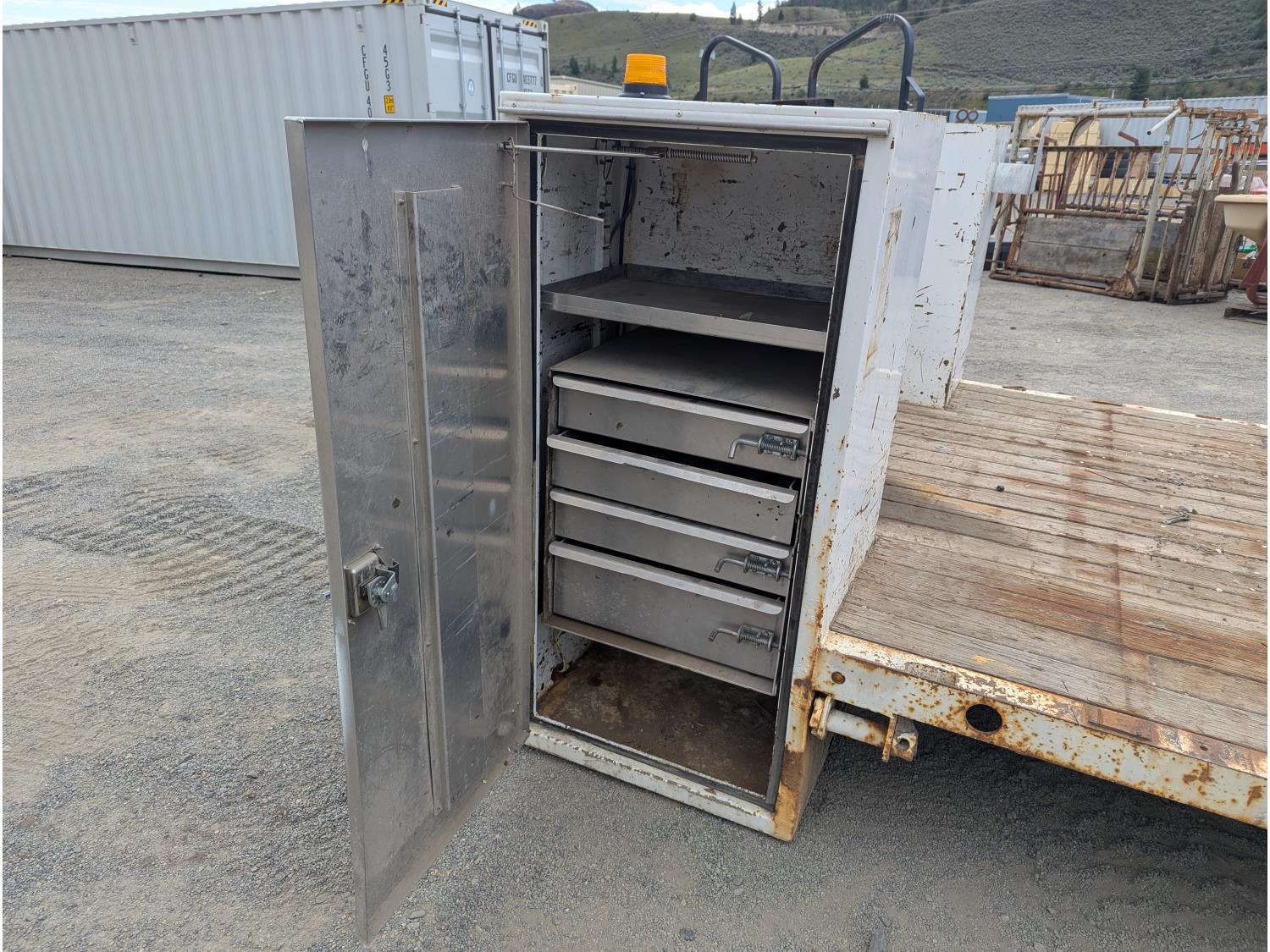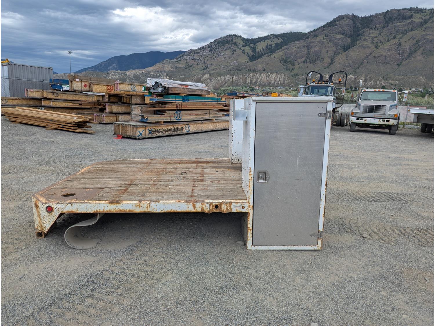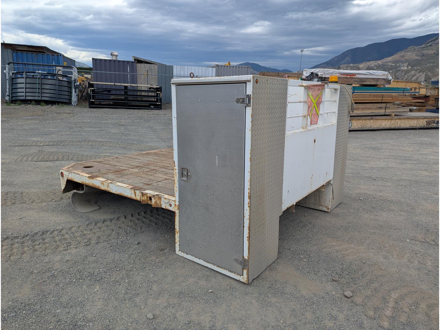 Steel Frame, 118 inch long x 8 ft wide wood deck, aluminum cabinet doors and drawers