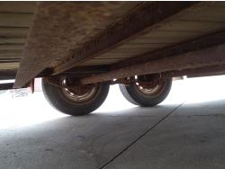 83 inch wide deck, wood deck, spring suspension, ball hitch, stake pockets, ball hitch 2 5/16, 3500 lb axles, 235/75R15 tires