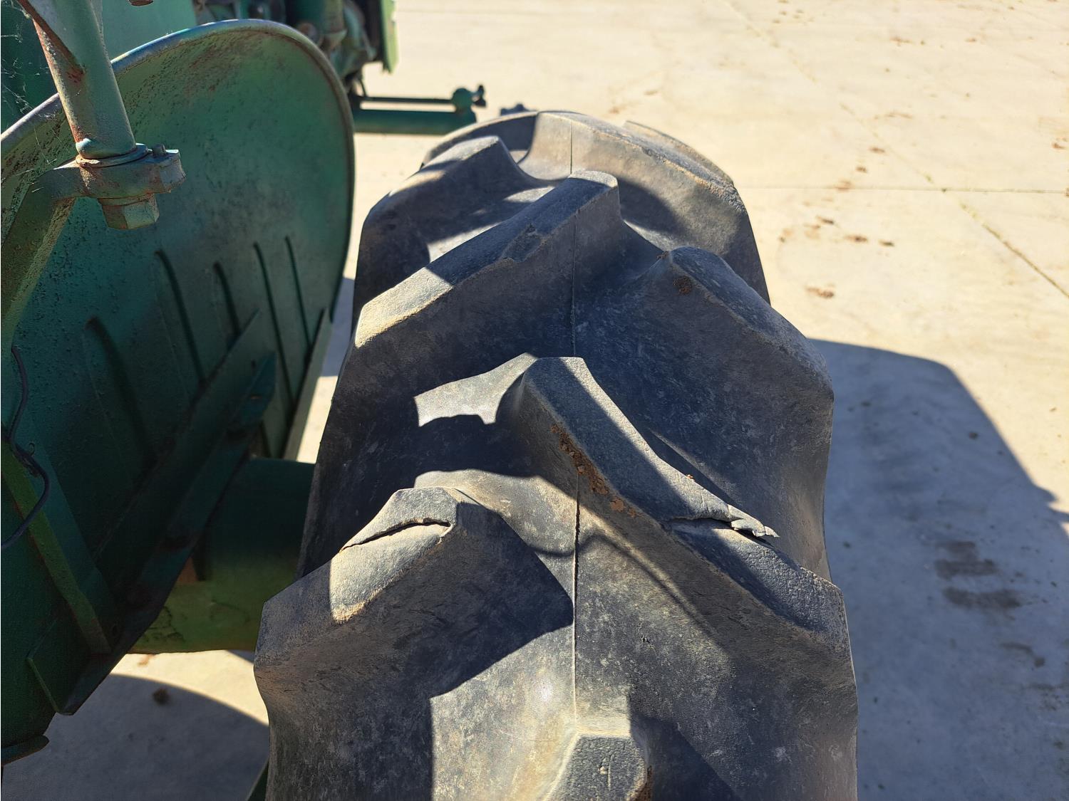 John Deere 1.6 L 2 cylinder 22 HP, gas engine, 4 speed manual transmission, open station platform, 540 PTO, rear wheel weights, 5.00-15 front tires, 11.2/10-24 rear tires