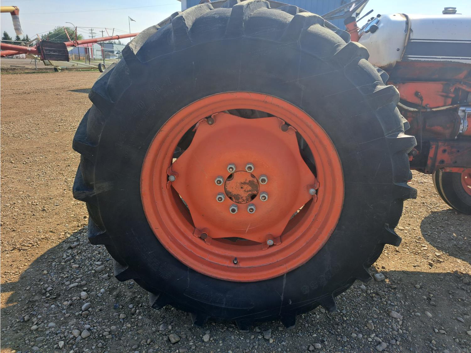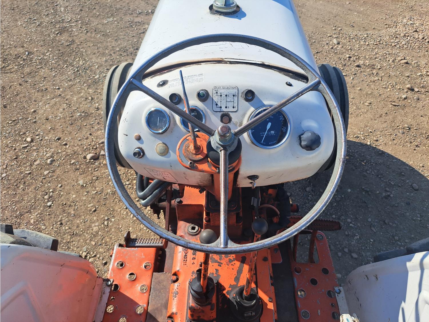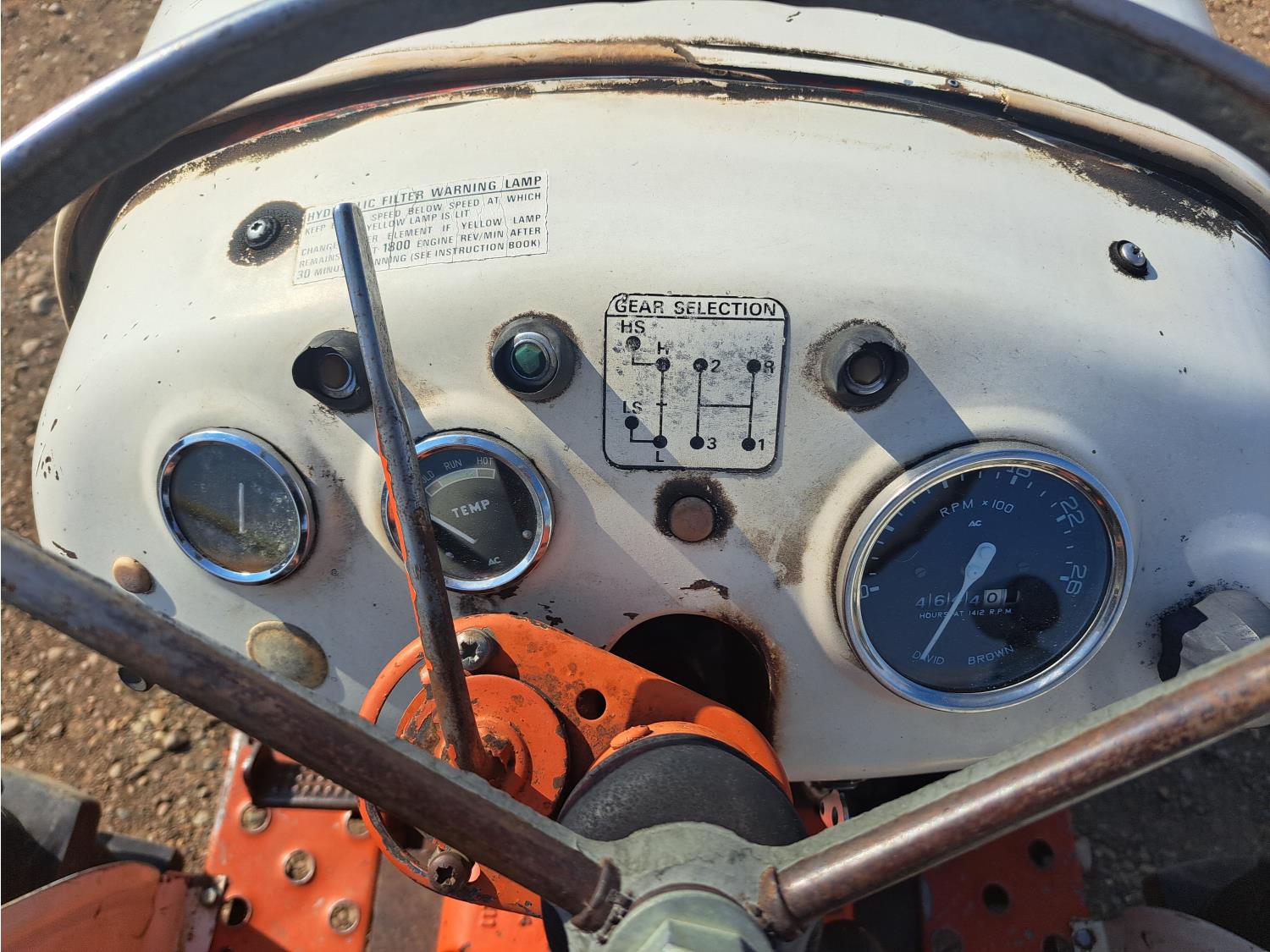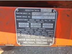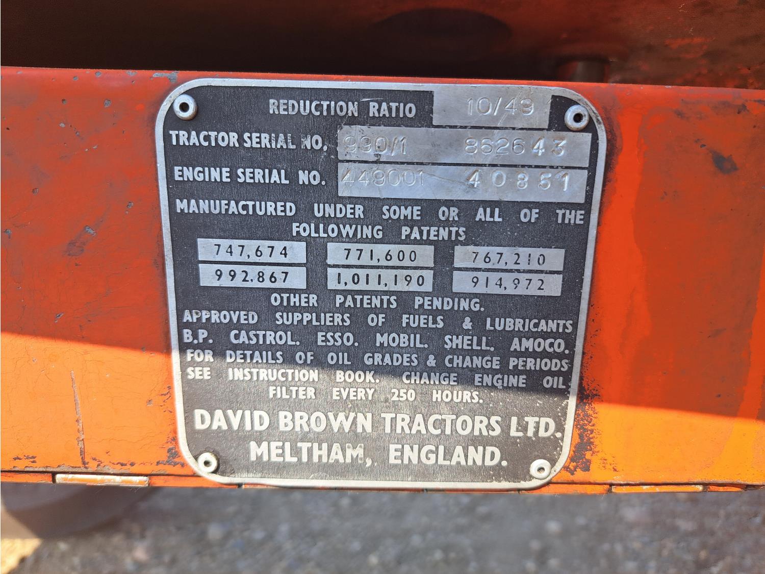 David Brown 3.2 L 4 cylinder 58 HP, diesel engine, 52 PTO HP, 12 speed partial synchro transmission, open station platform, 540E PTO, 3 point hitch, 2 rear hydraulic outlets, 7.50-16 front tires, 16.9-30 rear tires
