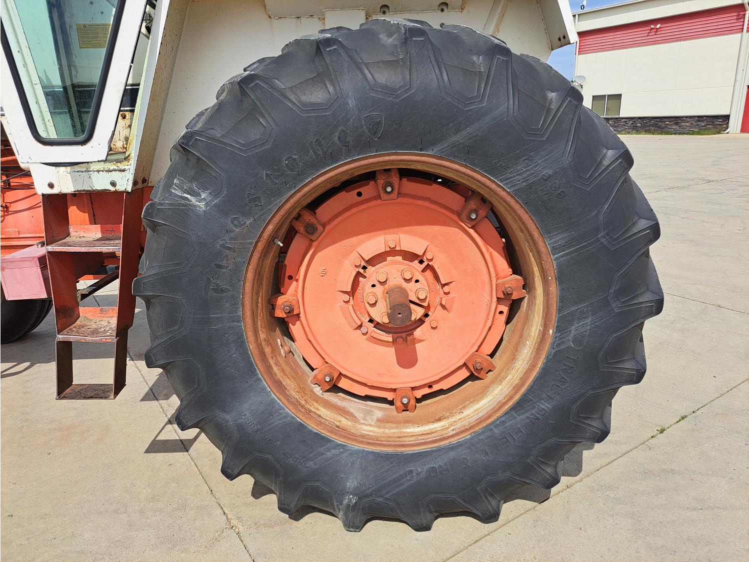 case 7.4 L 6 cylinder 112 HP, diesel engine, 101 PTO HP, 12 speed partial power shift transmission, cab, radio, 540/1000 PTO, 2 rear hydraulic outlets, 11.00-16 front tires, 20.8-38 rear tires