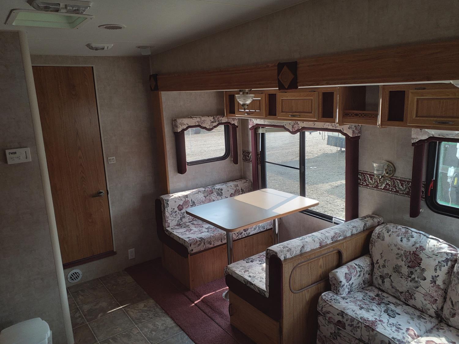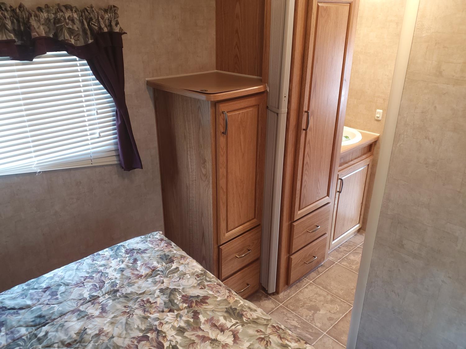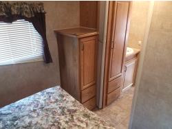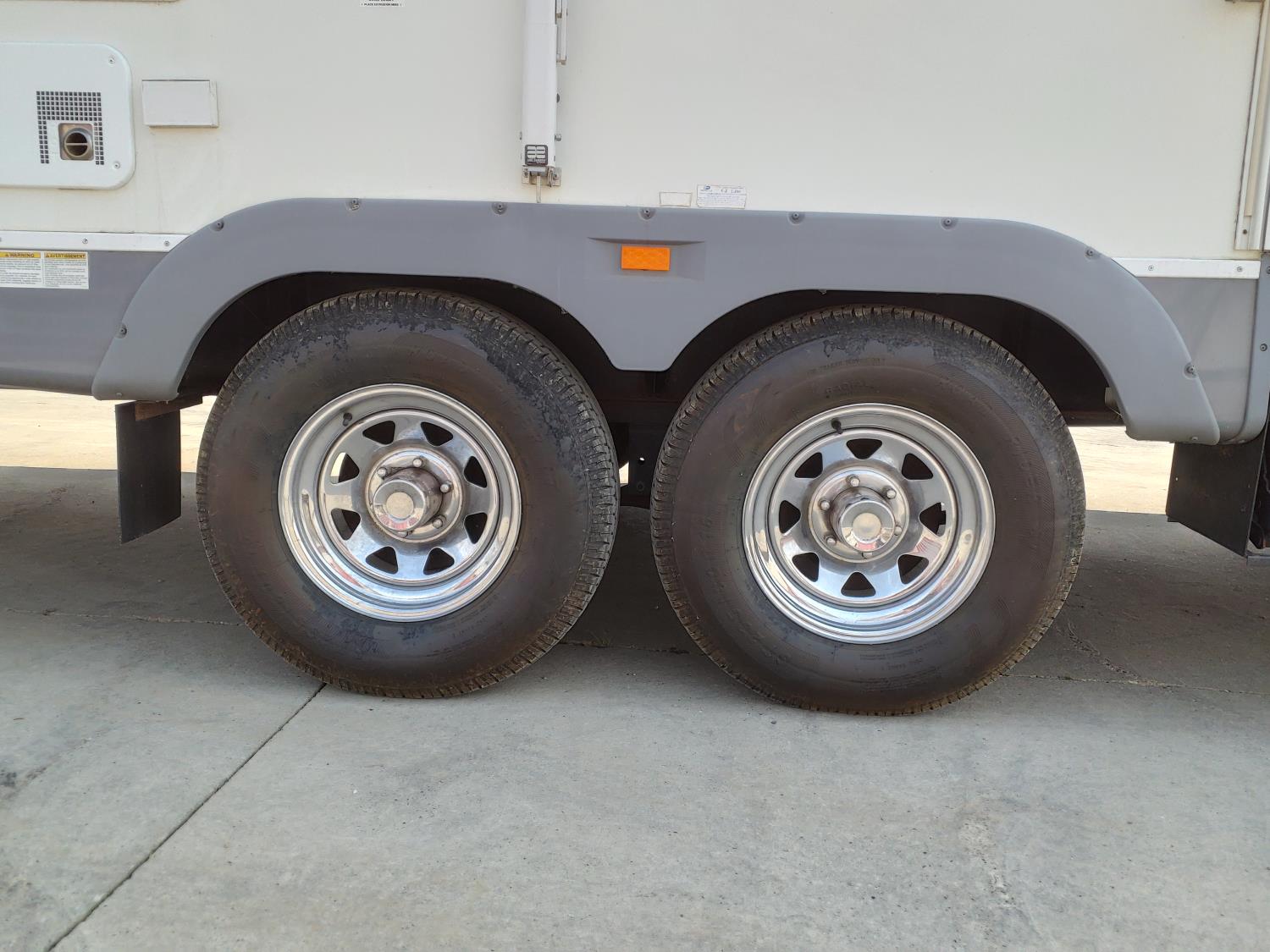 stove, fridge, microwave, full bath, master bedroom, bunk beds, A/C, outdoor shower, 1 slide, power awning, power levelling jacks, spring suspension, 235/80R16 tires