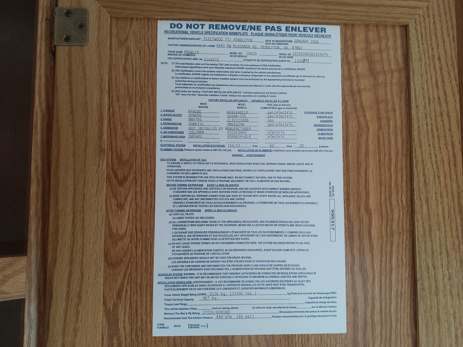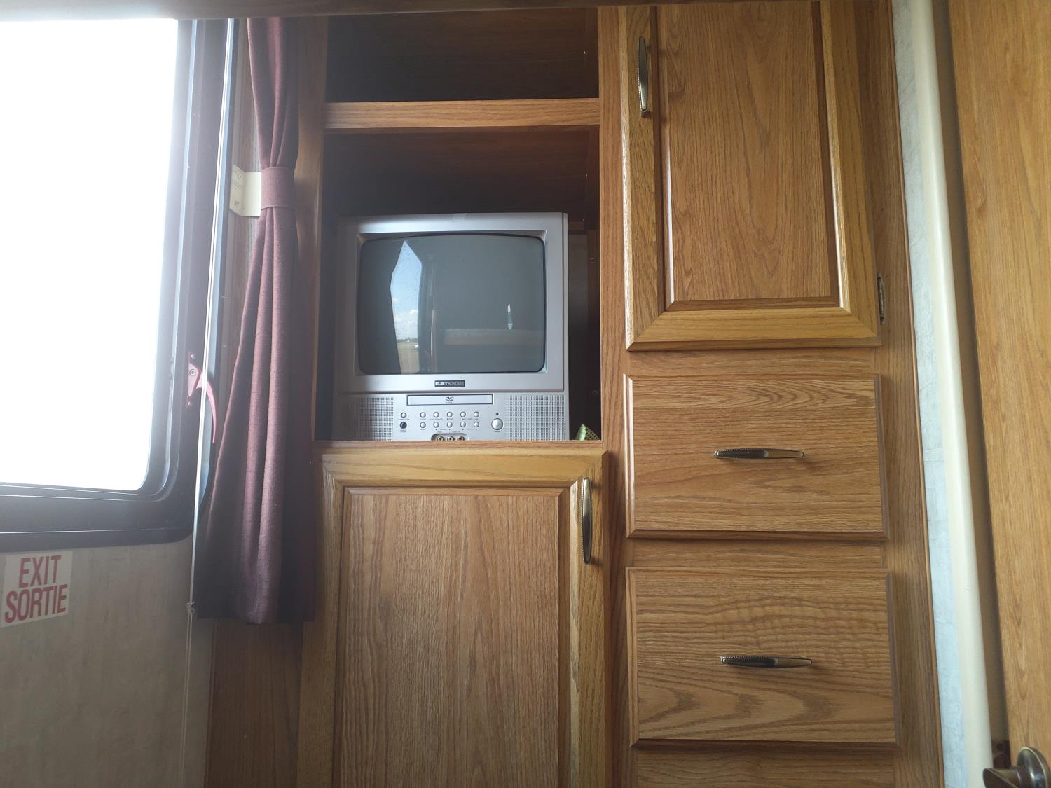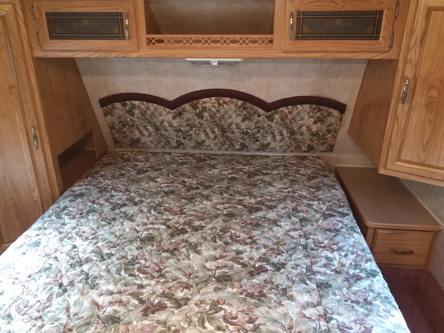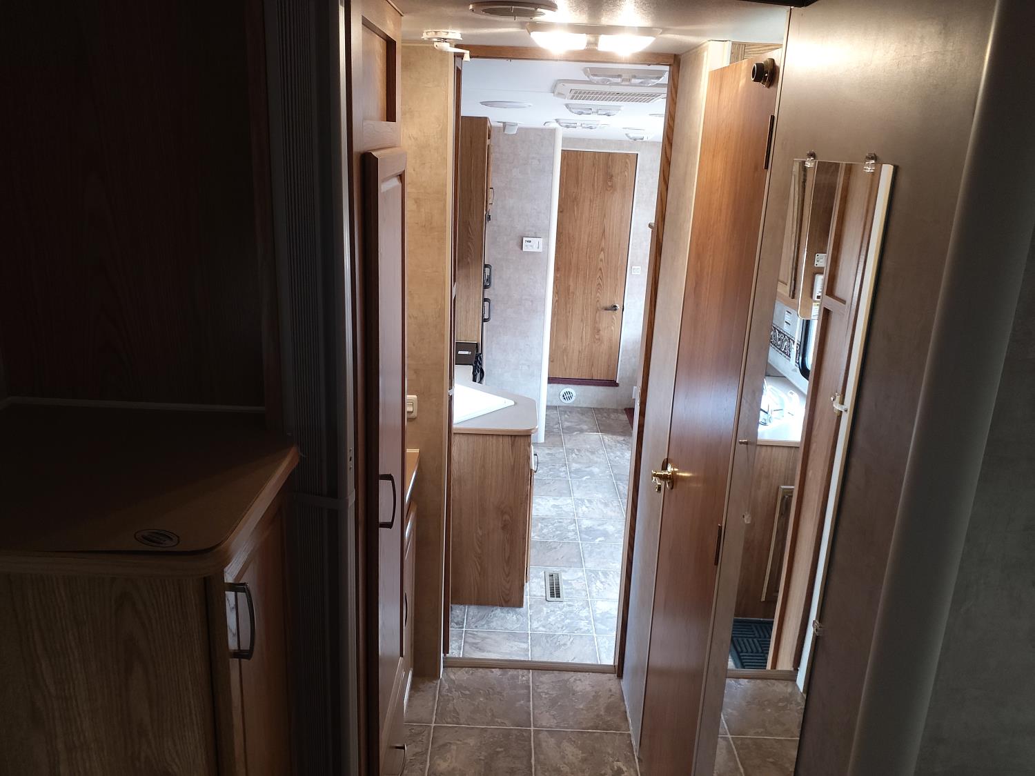 stove, fridge, microwave, full bath, master bedroom, bunk beds, A/C, outdoor shower, 1 slide, power awning, power levelling jacks, spring suspension, 235/80R16 tires