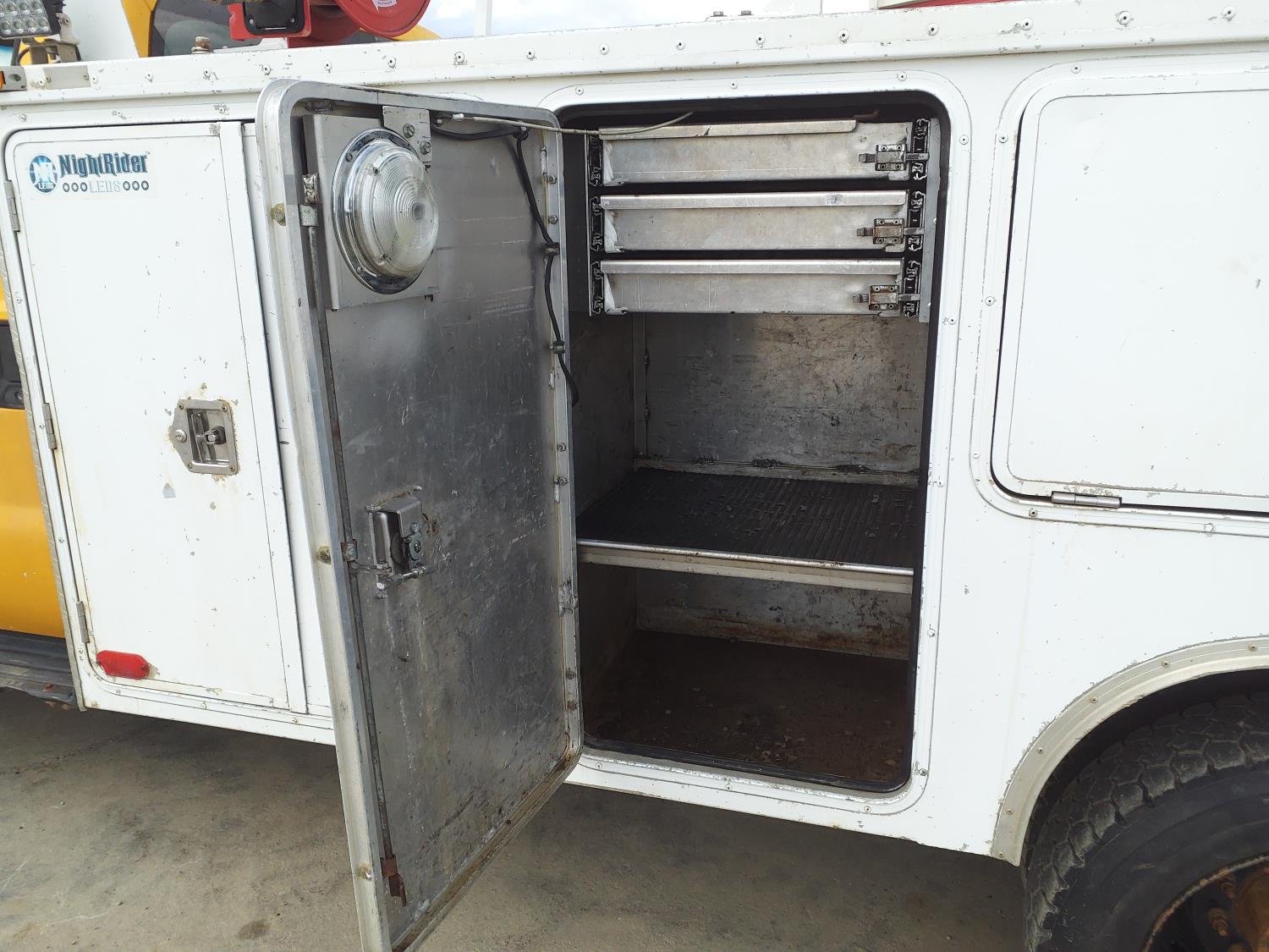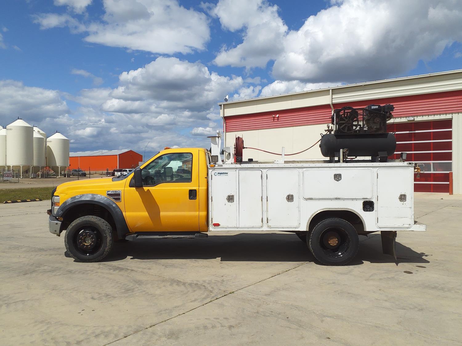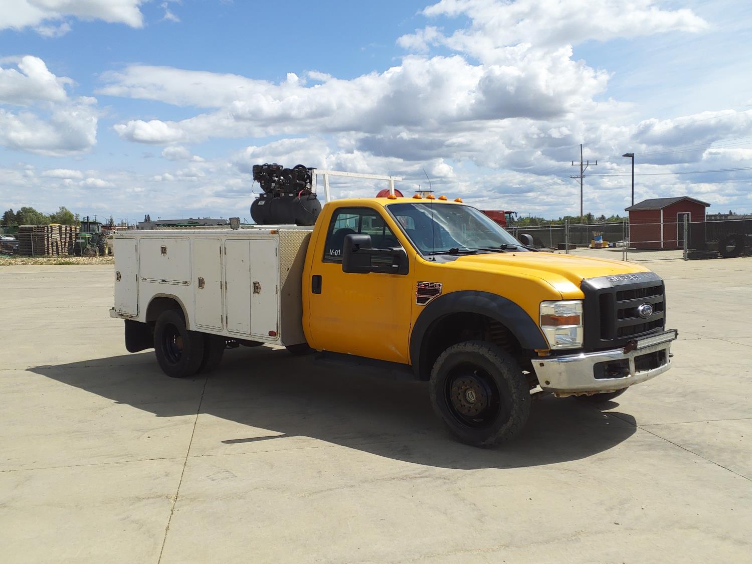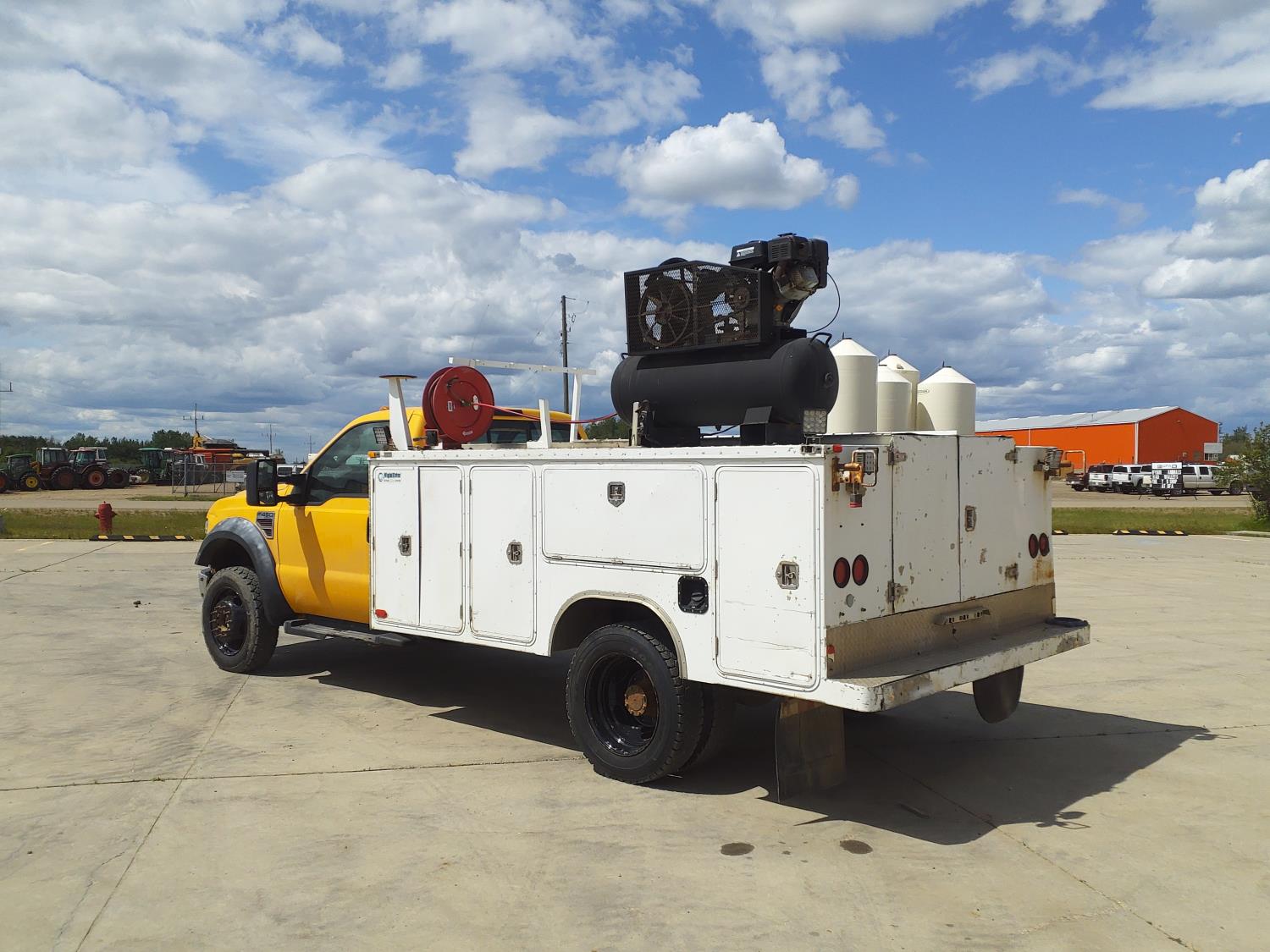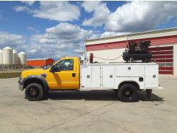 6.4 L, V8, diesel, automatic transmission, A/C, 11 ft service body, gas air compressor, 225/70R19.5 tires