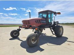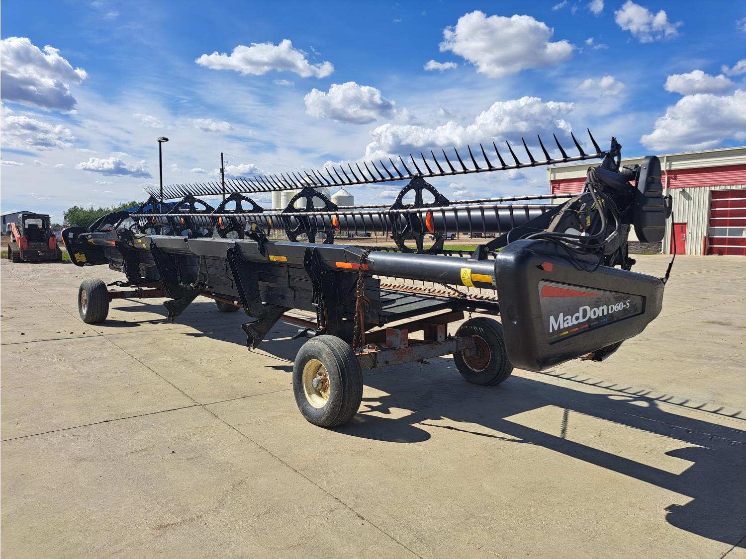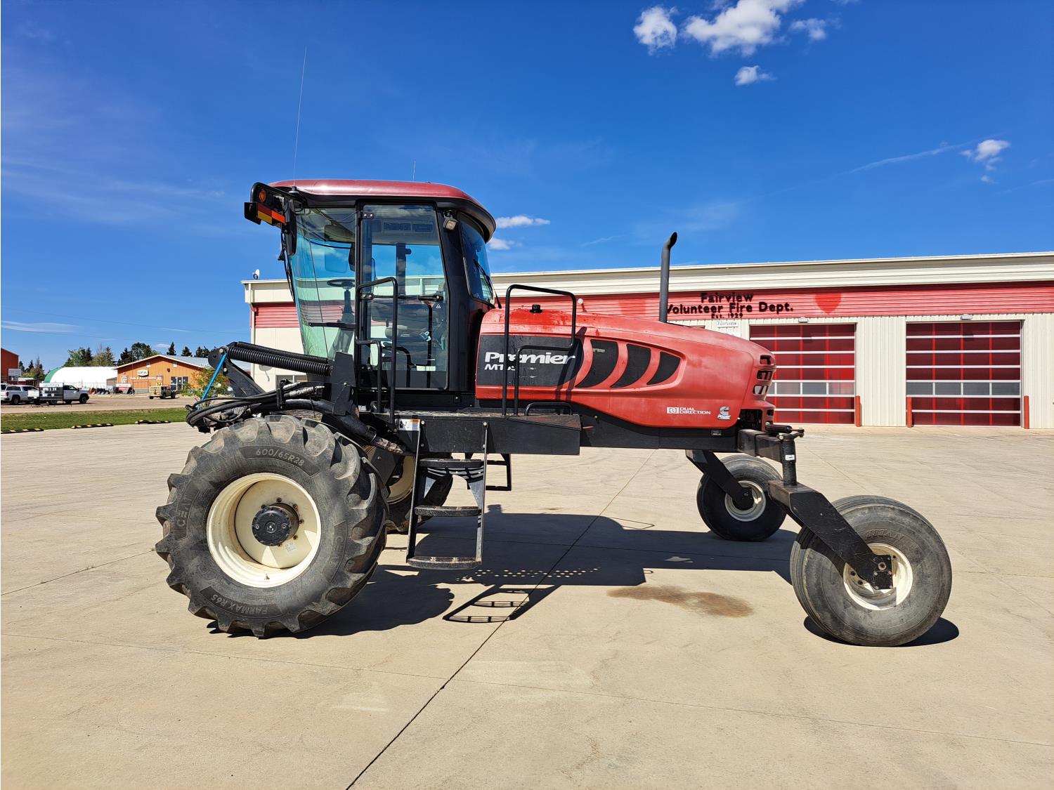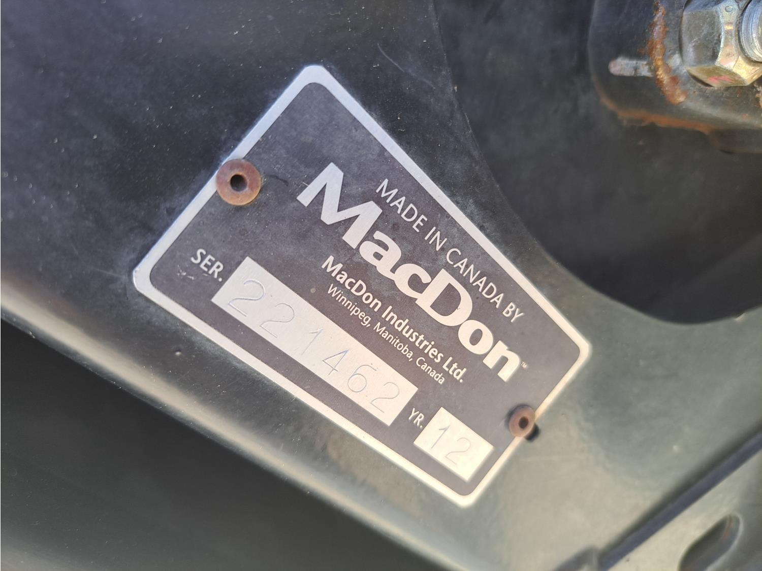 2012 MacDon D60-S double delivery variable speed reel, Pathfinder header transport, 12.5L-15SL transport tire size, Cummins 4.5 L diesel engine, A/C, radio, air ride seat, buddy seat, reversible operator station, 600/65R28 front tires, 16.5L-16.1 rear tires