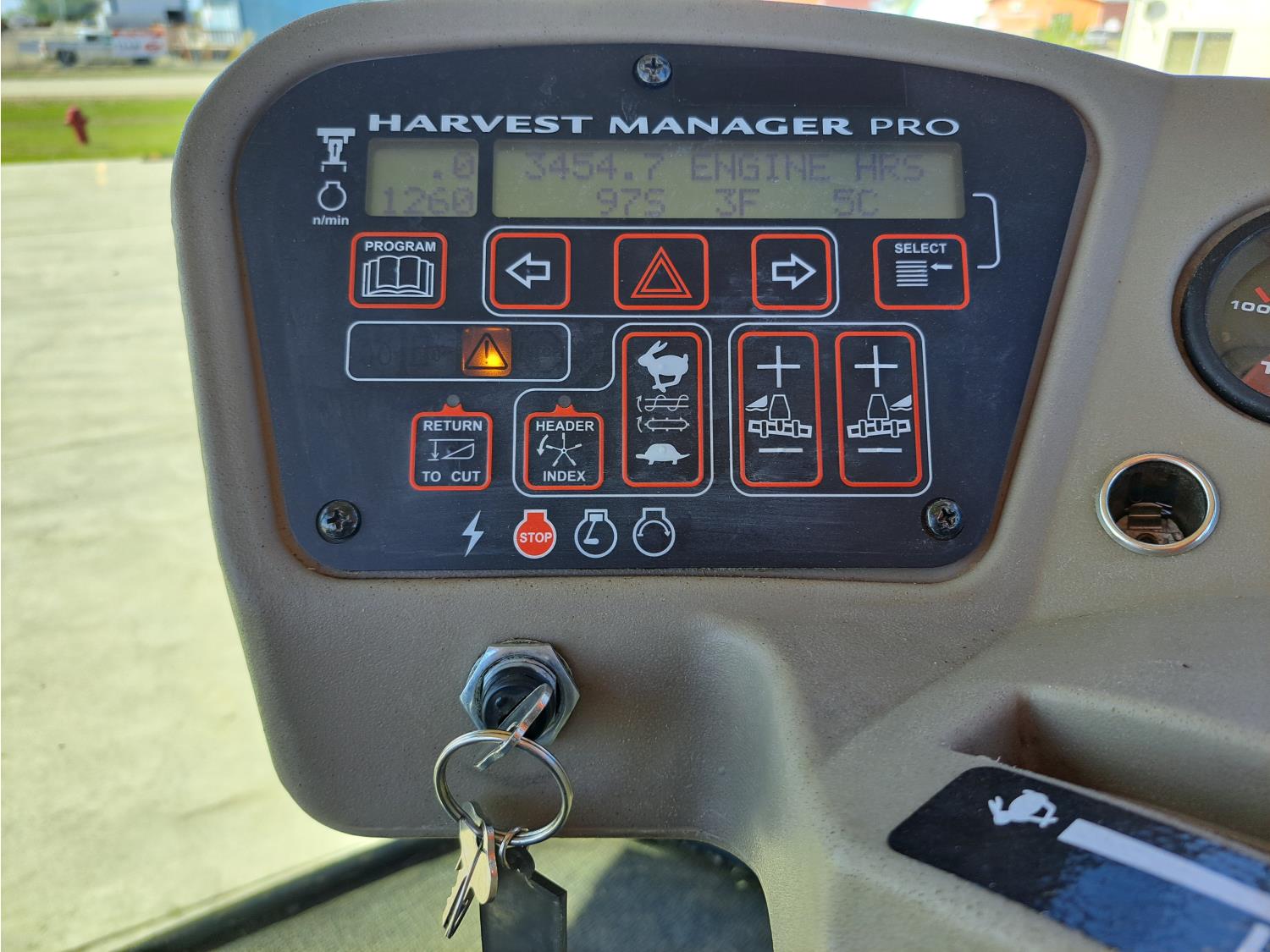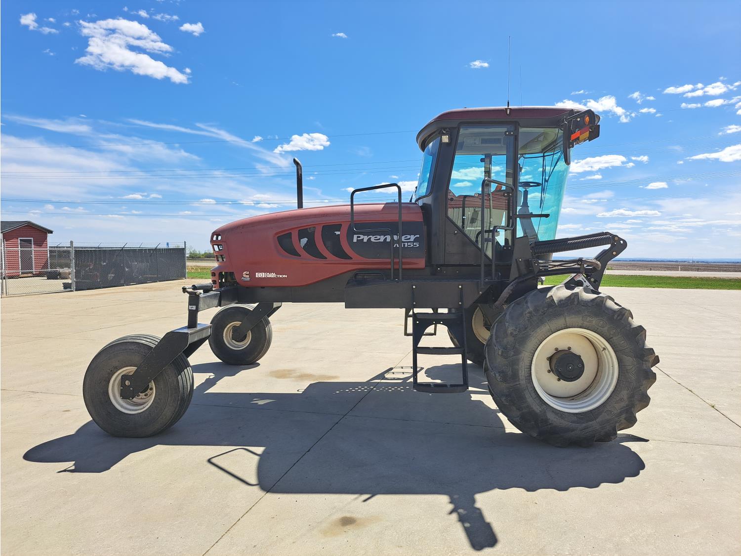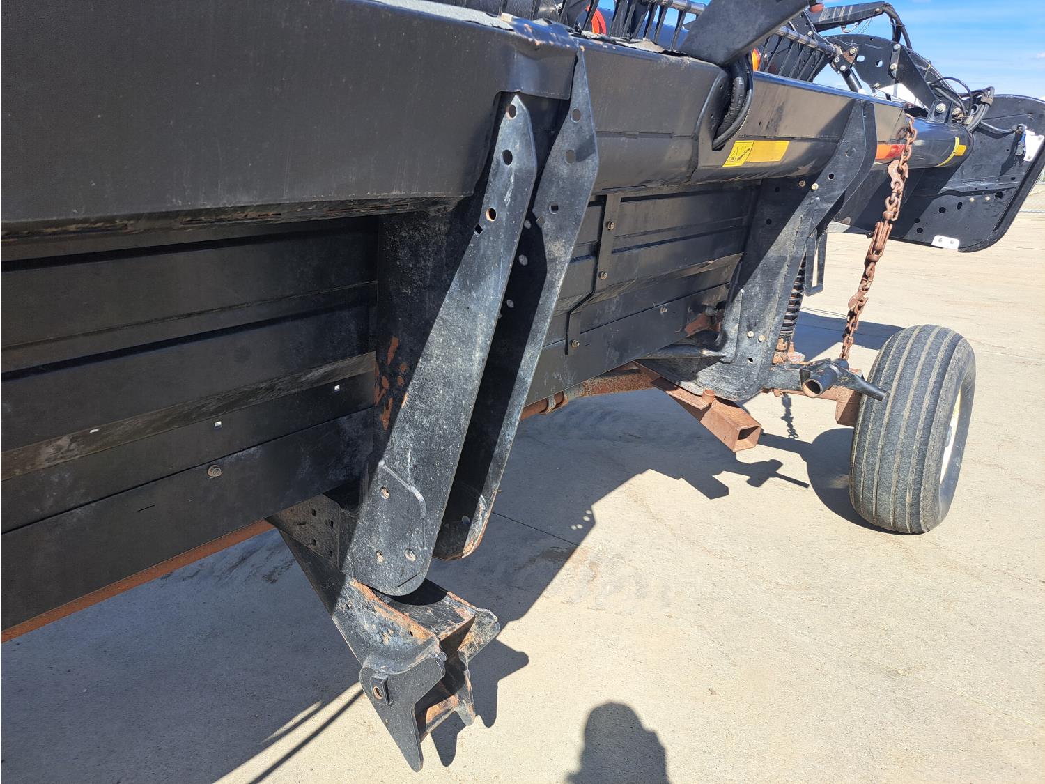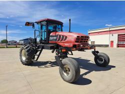2012 MacDon D60-S double delivery variable speed reel, Pathfinder header transport, 12.5L-15SL transport tire size, Cummins 4.5 L diesel engine, A/C, radio, air ride seat, buddy seat, reversible operator station, 600/65R28 front tires, 16.5L-16.1 rear tires