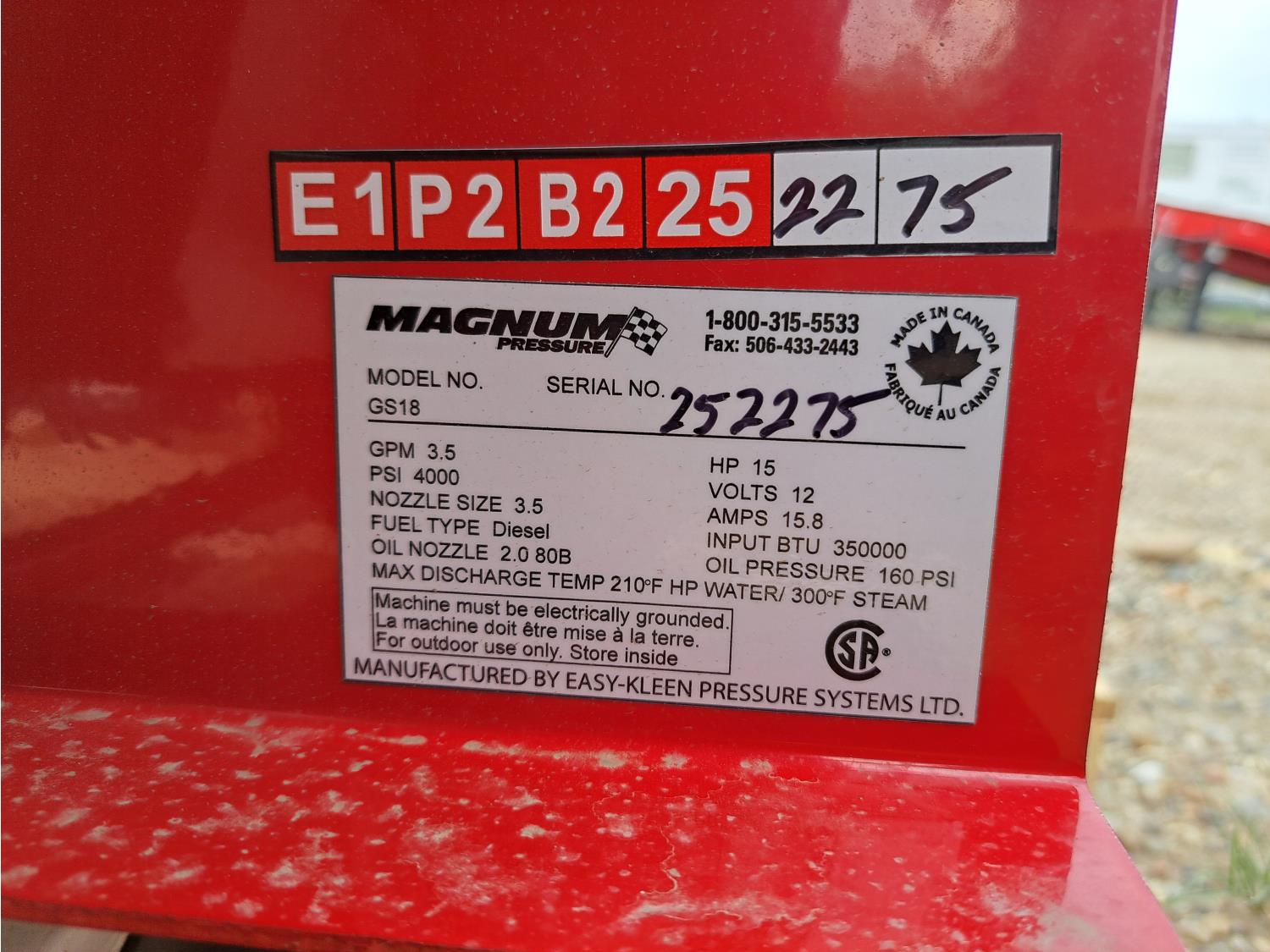313 Easy Kleen Gs18 4000 Series Gold Diesel Fired Hot Water Pressure Washer