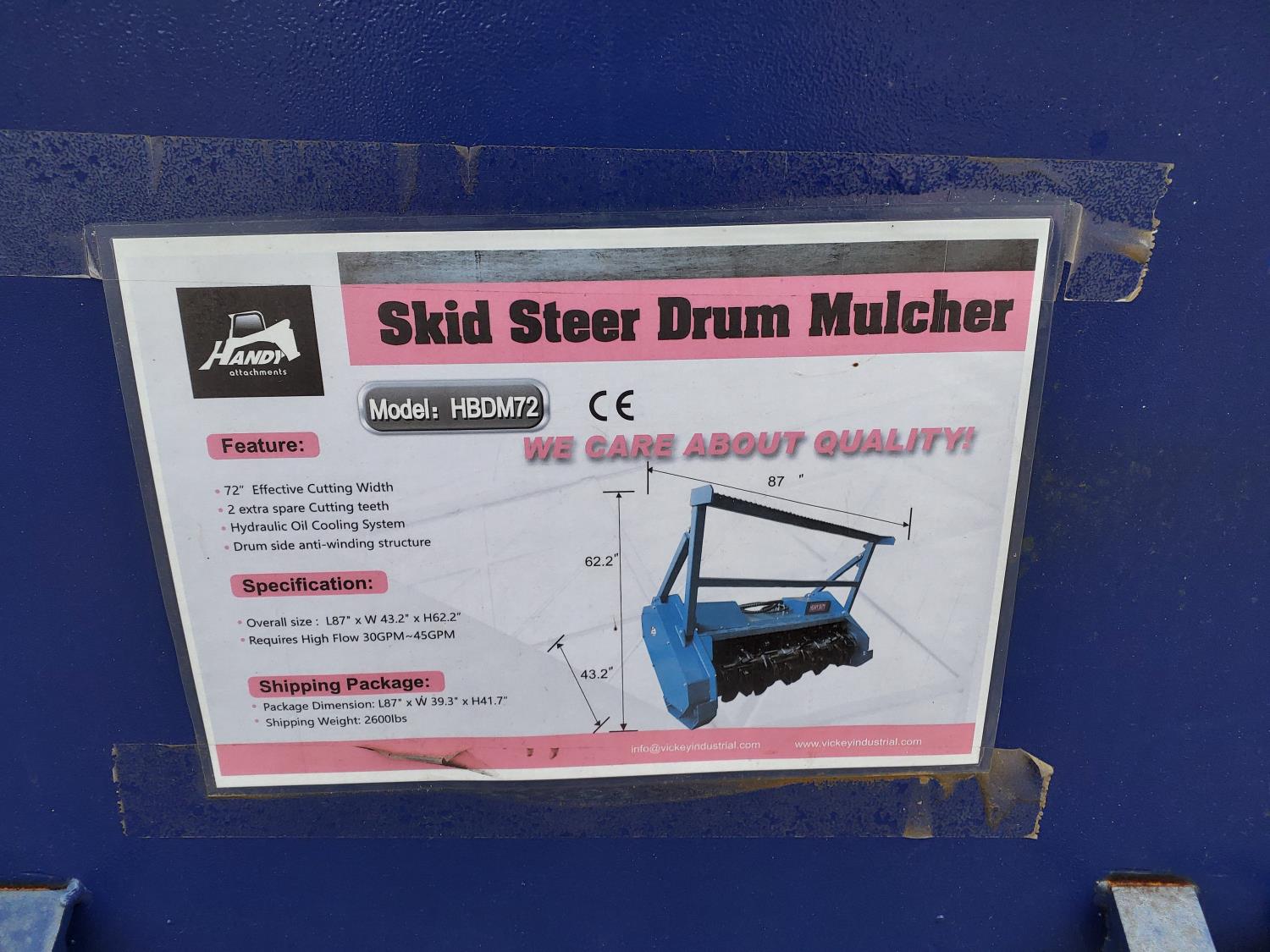 415 Handy Attachments 72 Inch Skid Steer Drum Mulcher (Unused)