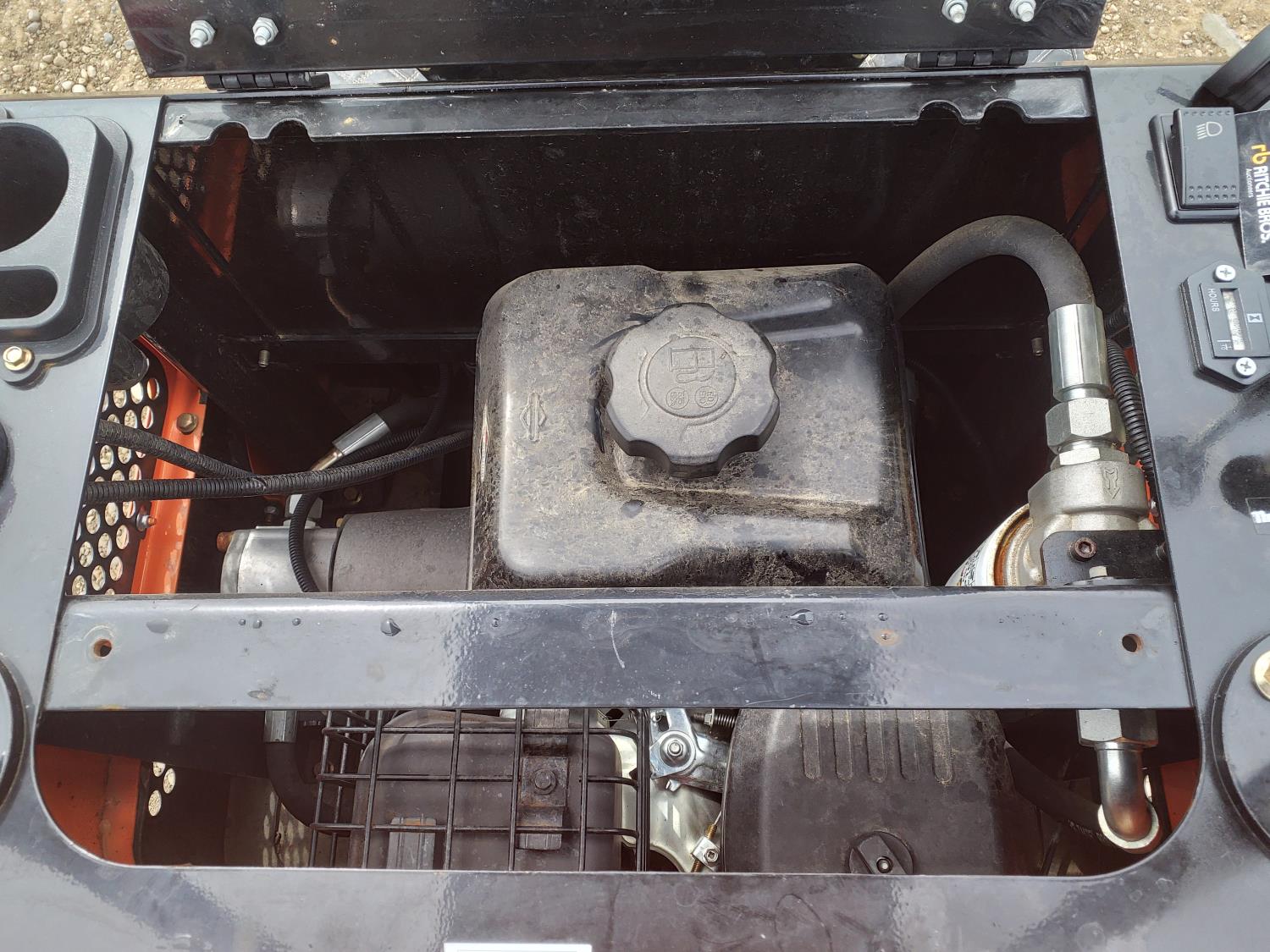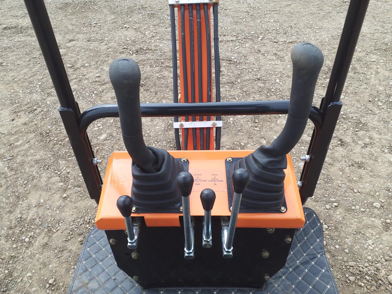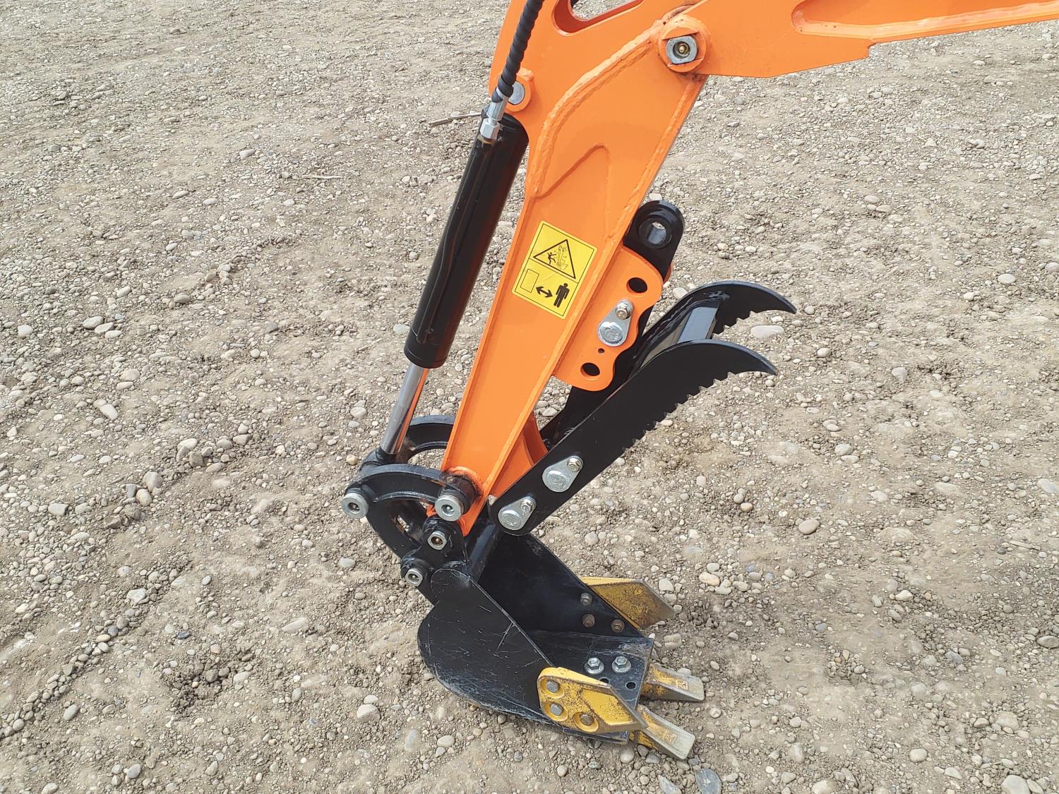 Briggs & Stratton 420 cc (13.5 HP) gas motor, electric start with optional pull start, joy sticks, hydraulic oil tank gauge, LED work light, 39 inch backfill blade, 15 inch bucket, ripper teeth, fixed thumb, auxiliary hydraulic outlets and controls, 7 inch wide x 48 inch long tracks, adjustable seat, 2 ft 8inch stick, canopy,