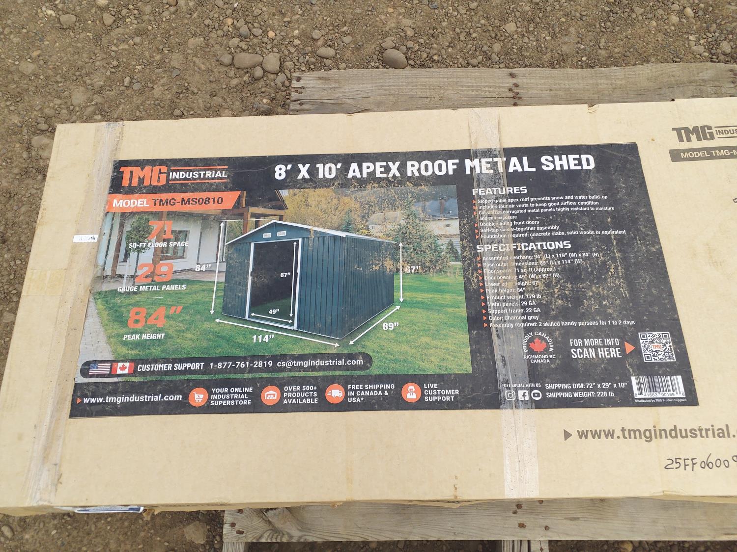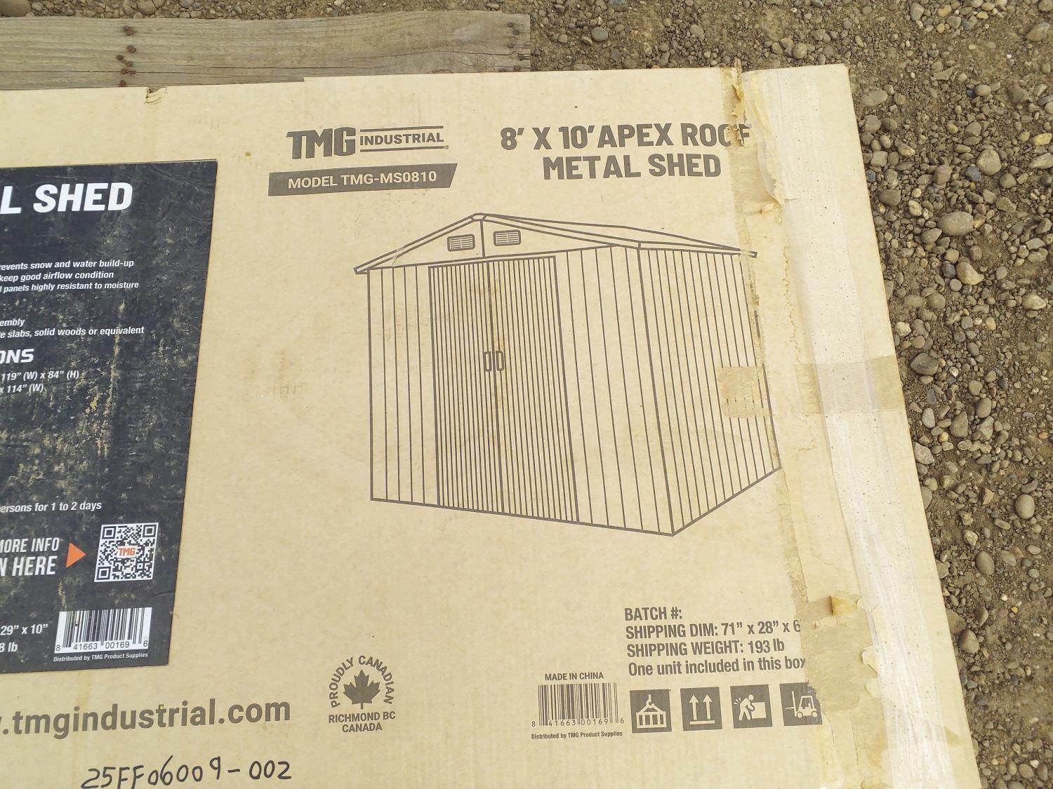 218 TMG Industrial 8 Ft X 10 Ft Apex Roof Metal Shed (Unused)