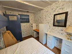 On 12 inch x 12 inch skids, fully wired, sleeps 5, appliances & furniture come with cabin, fridge is excluded.