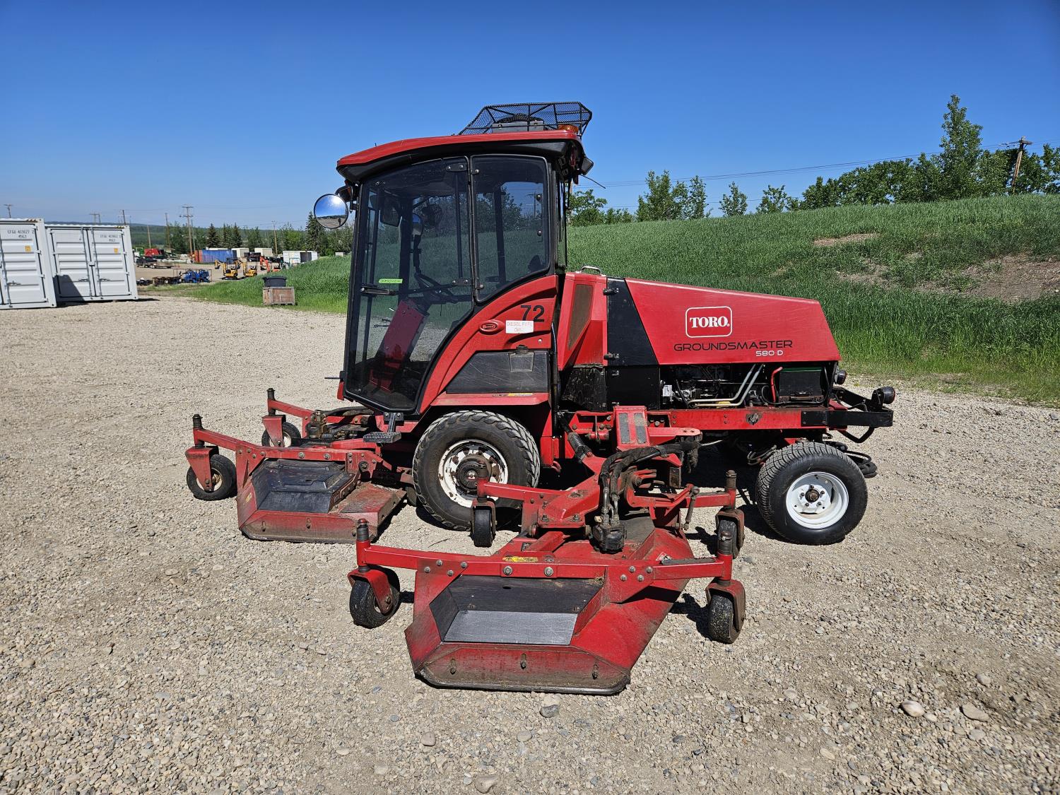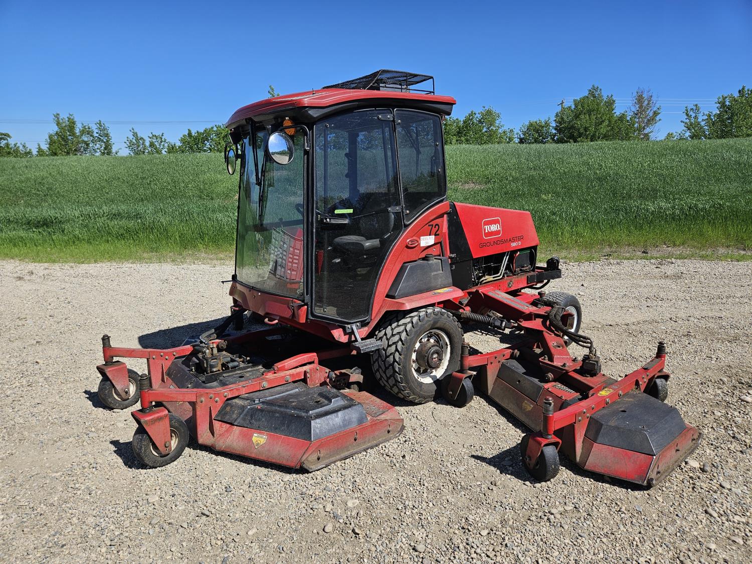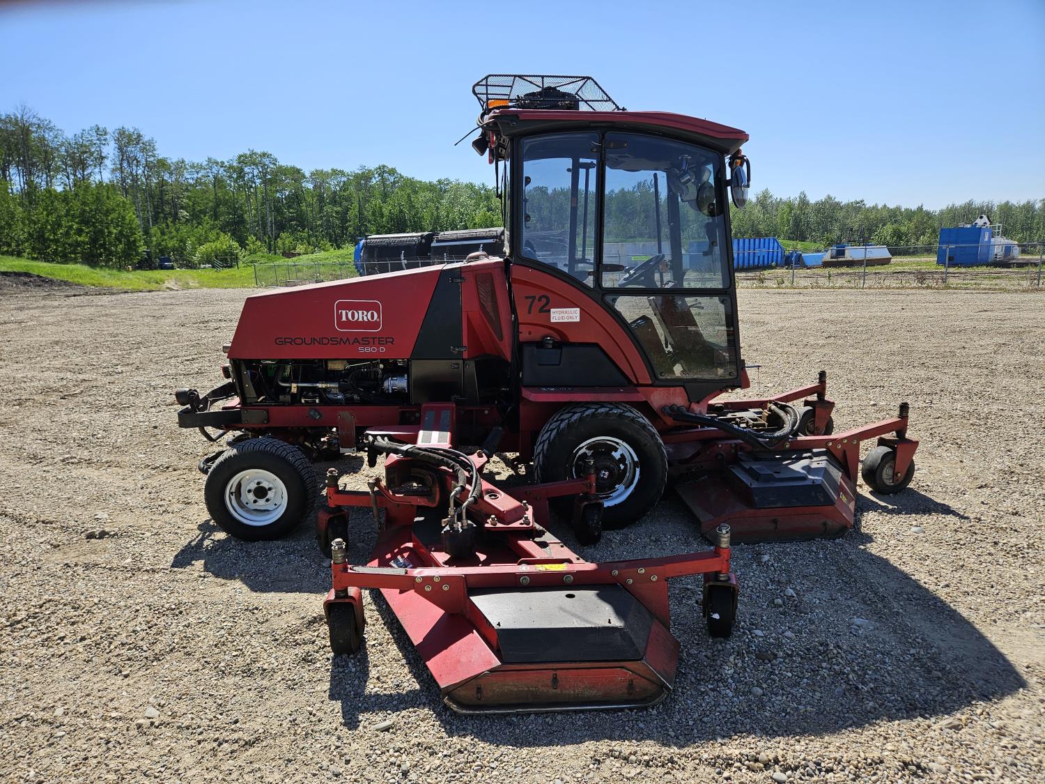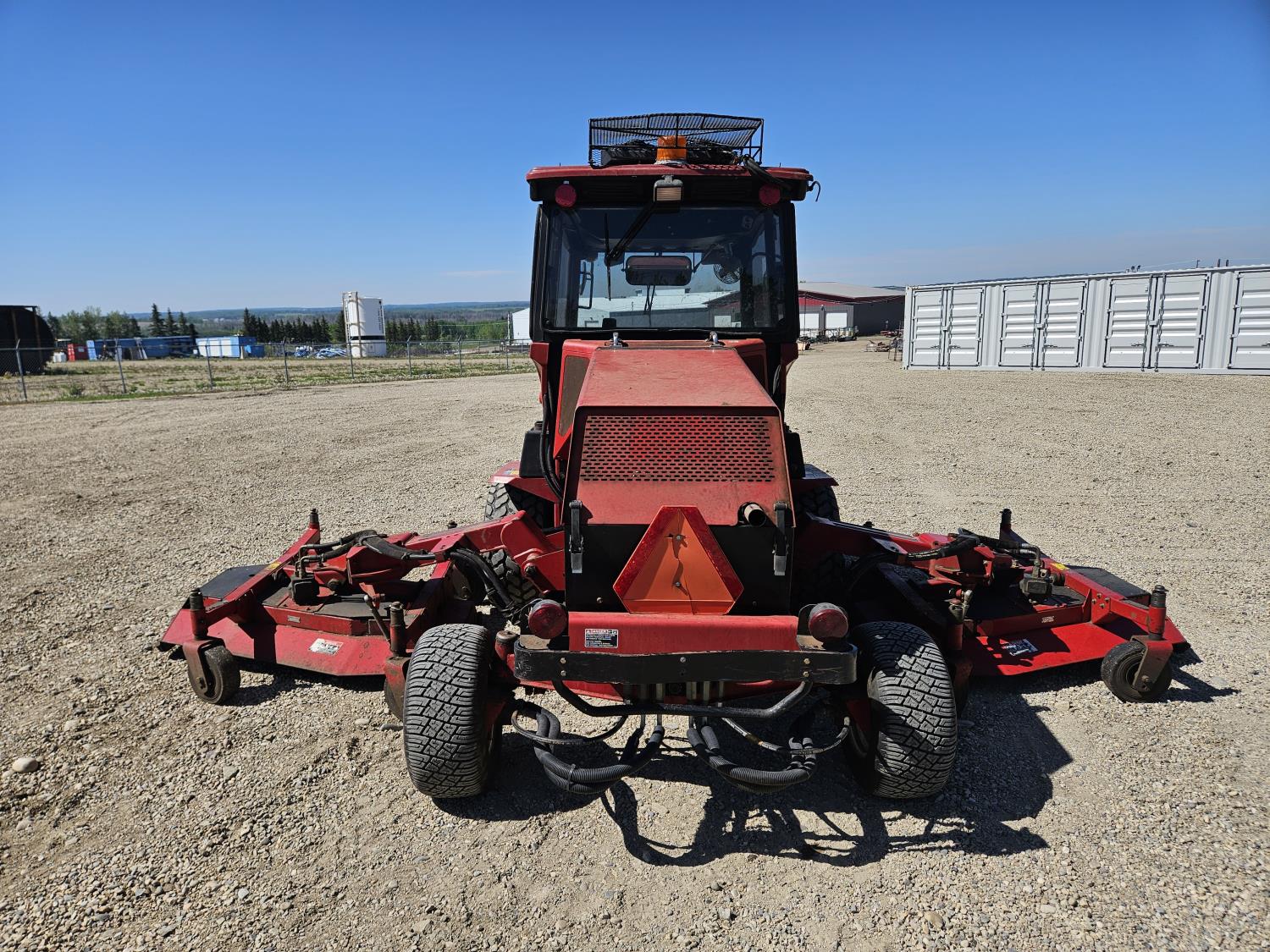 Mitsubishi 4 cylinder diesel engine, hydrostatic transmission, enclosed cab, heat, A/C, radio, double wing, lights, 4WD, 23x10.5-12 rear tires, 31x13.5-15 front tires