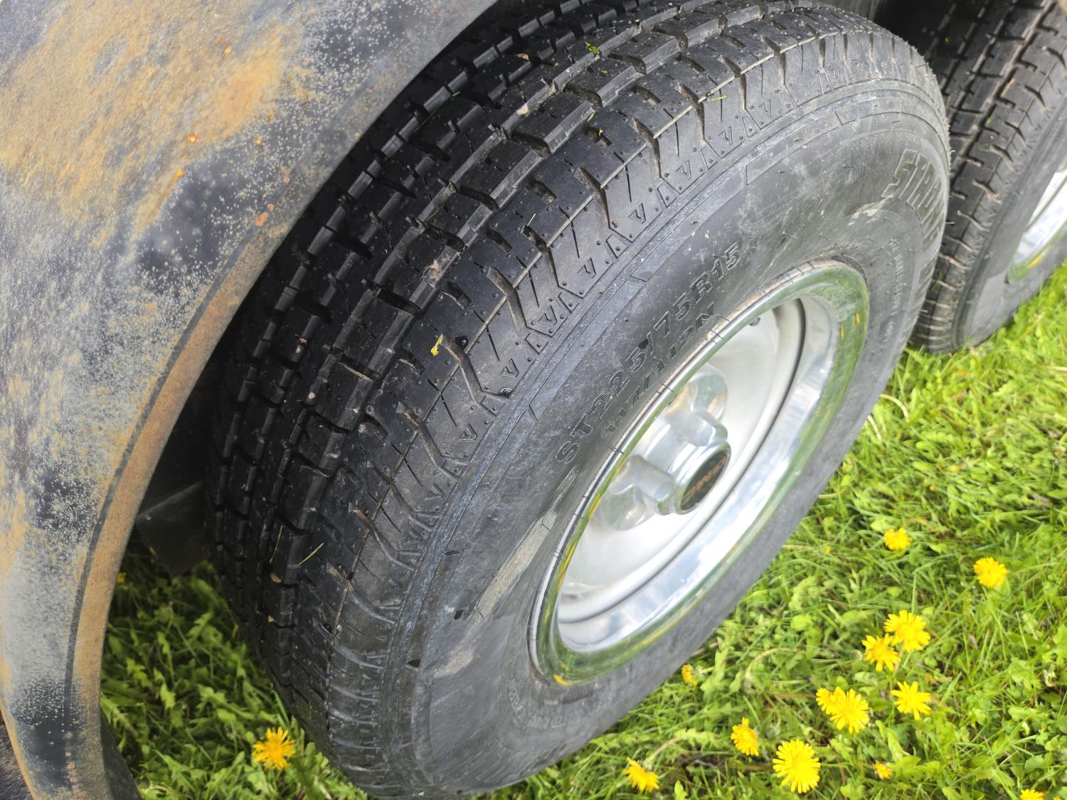 83 inch wide deck, wood deck, electric brakes, spring suspension, ball hitch, stake pockets, 3500 lb axles, 225/75R15 tires